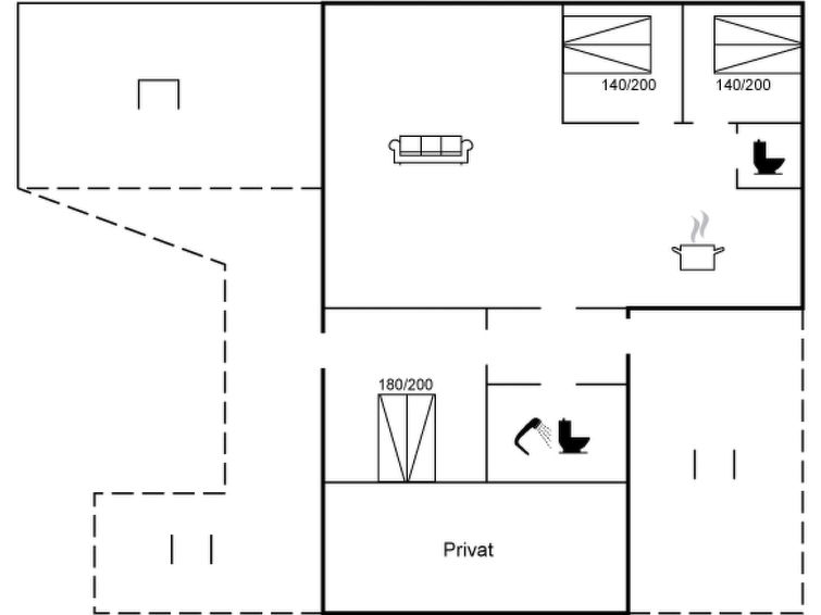 Enmannsbolig, bygget i 1971. 1.8 km fra sjøen. Fellesbruk: hage. Privat: uberørt tomt 2'279 m2, hage (inngjerdet). Terrasse (60 m2), lekeplass (huske). I huset: fotballsbord, vaskemaskin. Parkering ved hbrukt. El-ladestasjon. Daglivarehandel 1.8 km. Golfbane 500 m. Eieren godtar ikke noen ungdomsgrupper.