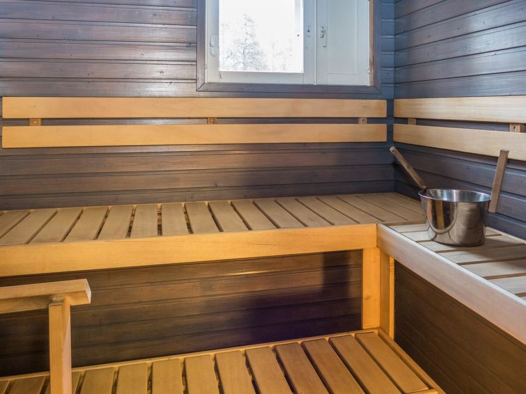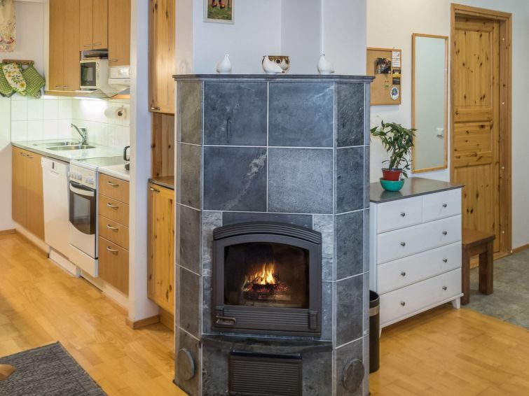 The kitchenette has everything needed for cooking and socialising. A fireplace provides coziness during meals, and the apartment's own sauna offers extra warmth after a day's excursions.