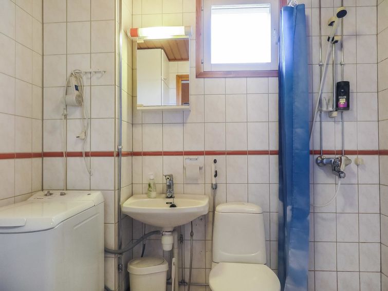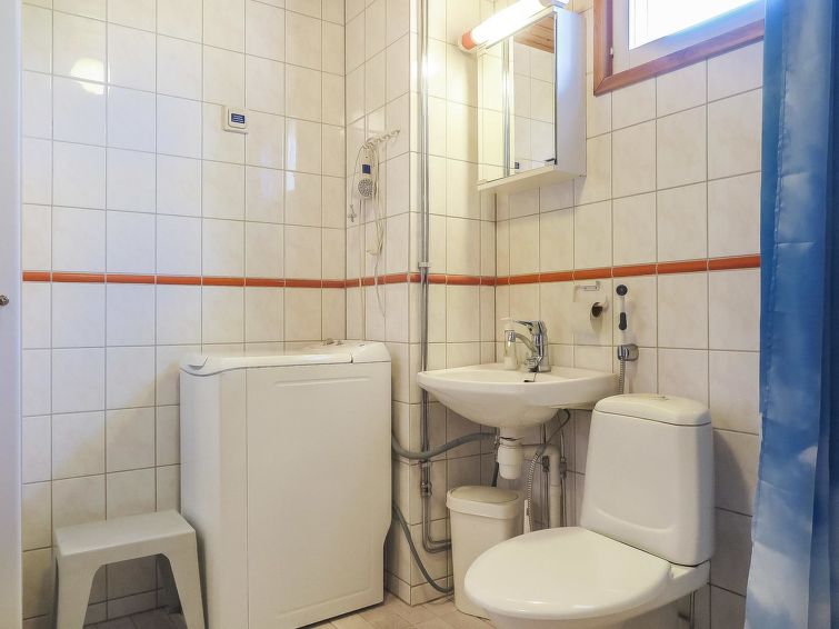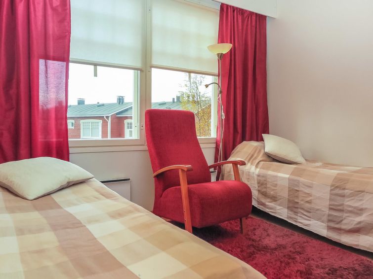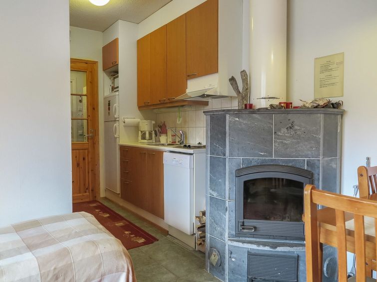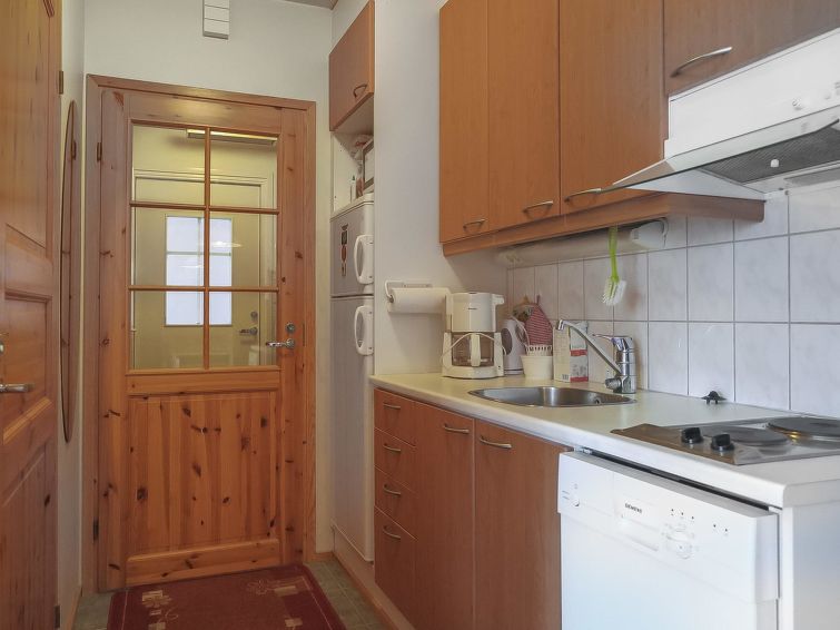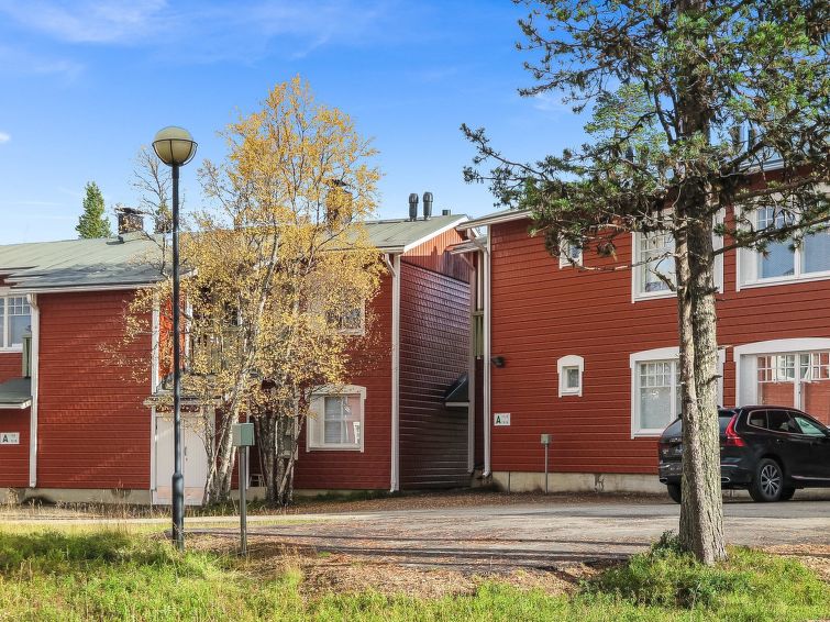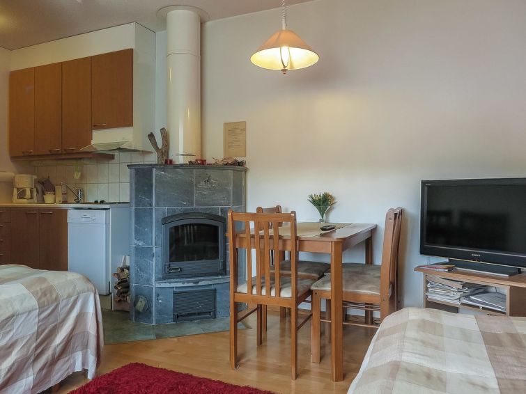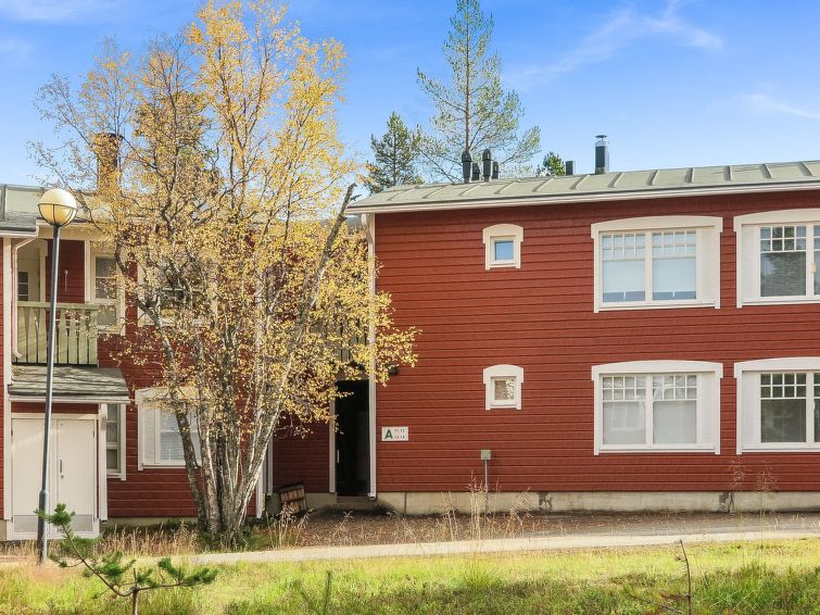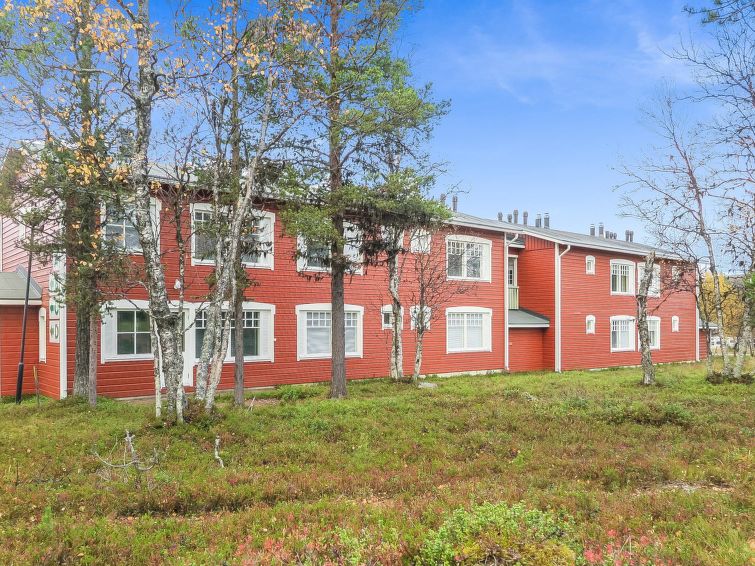 260 km North of Rovaniemi, Saariselkä tourist center. Apartment in second floor, built 1991, living room: 2 beds, kitchenette, sauna, washroom/toilet. Ski maintenance room downstairs in shared use. Small apartment for two with sauna in center of Saariselkä. All services within walking distance. Ski trail next to the house. Nearest slope Kaunispää, 1.5 km.