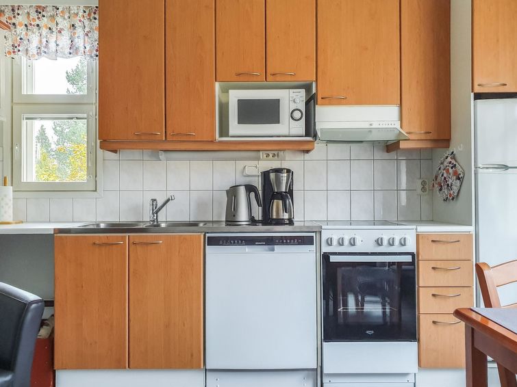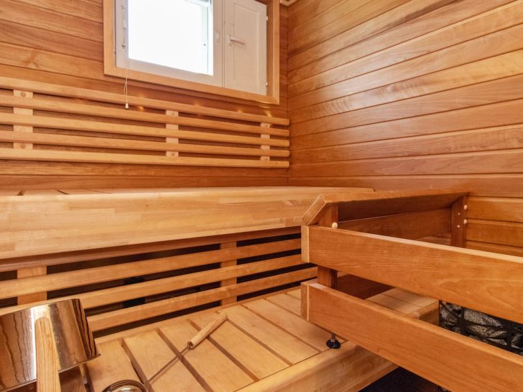 The kitchenette has everything you need for cooking and socialising. You can enjoy the warmth of the fireplace from the sofa and the apartment's own sauna provides extra warmth after a day's excursions.