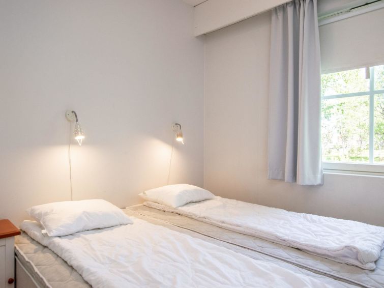 The kitchen-living room offers an excellent place for socialising and relaxing with the whole group. A soapstone fireplace in the same room adds an extra touch of cosiness and acotivity to your stay.