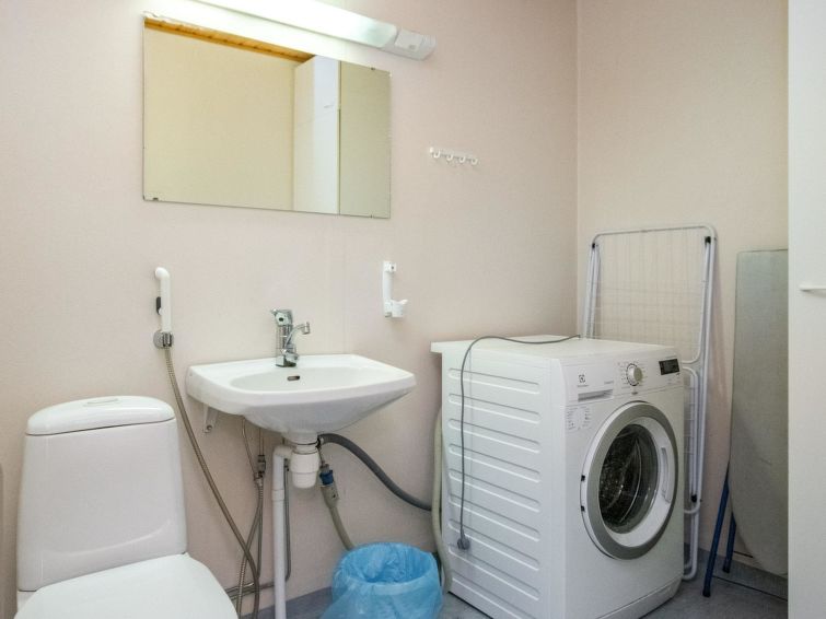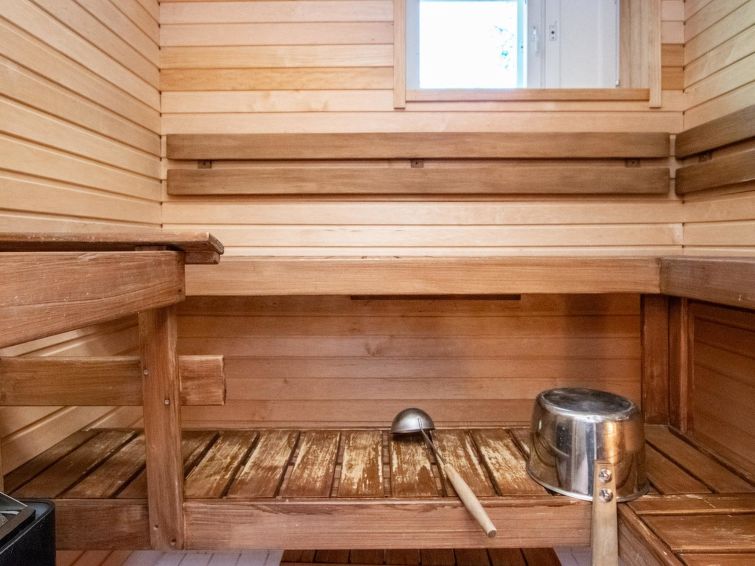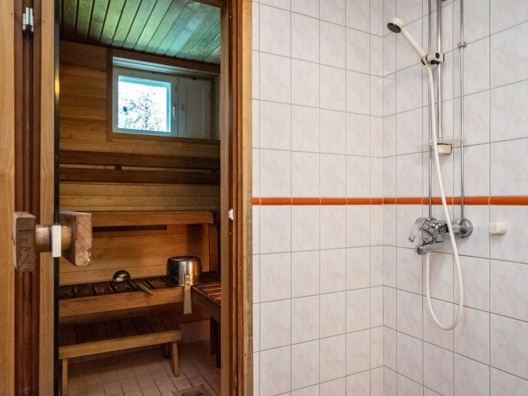 The sauna is a great place to take a refreshing moment, and the washroom has a double shower and a toilet. There is also a separate toilet.