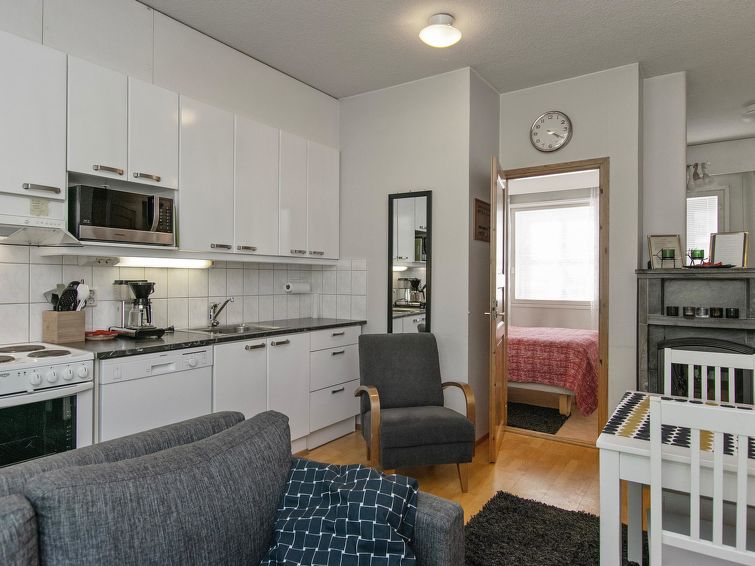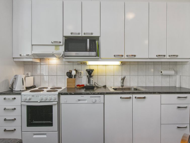 The kitchenette has everything you need for cooking and socialising. You can enjoy the warmth of the fireplace while dining, and the apartment's own sauna provides extra warmth after a day's excursions.