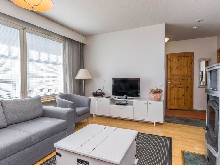 The kitchen-living room offers space for socialising as well as relaxing. A soapstone fireplace in the living room adds to the atmosphere and warmth of the accommodation.