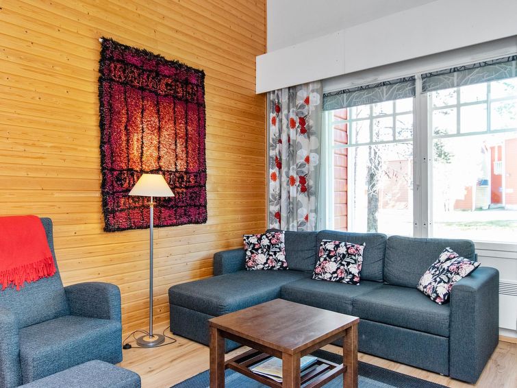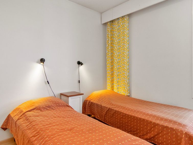 Upstairs there are three bedrooms for sleeping. Two of the bedrooms have two single beds. One bedroom has a 120 cm wide bed. There is also a convertible sofa bed downstairs, providing sleeping space for two.