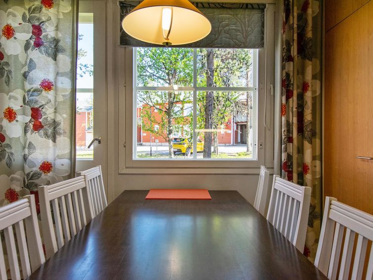 The two-storey apartment Moitakuru C 30 is located at the south end of a log house in the centre of Saariselkä, which provides good access to the area's services.
