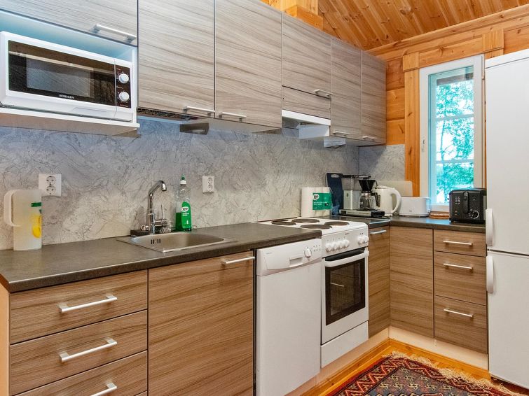 Log cottage, built 2013, kitchen, two bedrooms; one with double bed, one with 2 beds, sauna, bathroom, terrace.