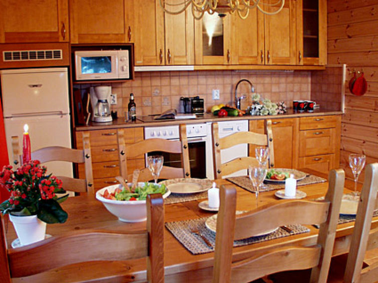 Wooden chalet 2004, kitchen, living room, bedroom 2 beds, bedroom double bed, washroom, hall, open porch. Portable charcoal BBQ grill. Please bring own coal.