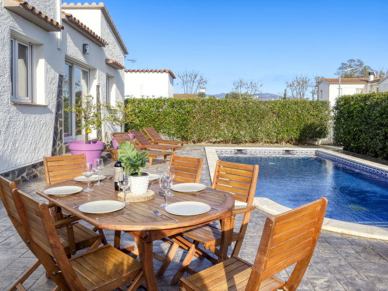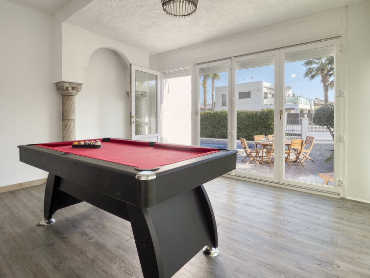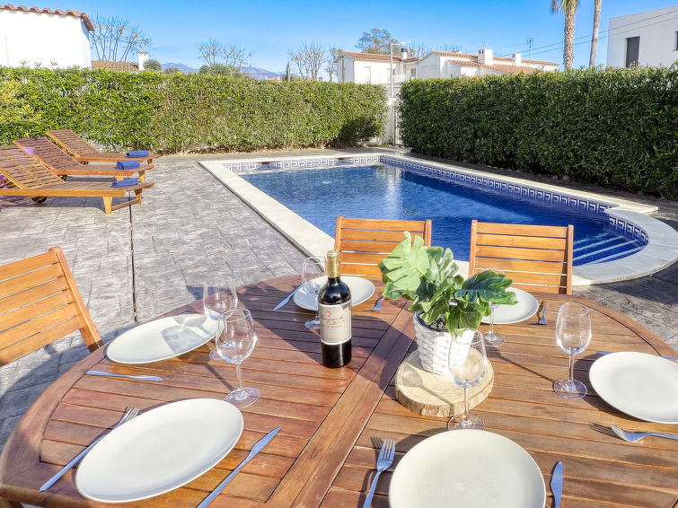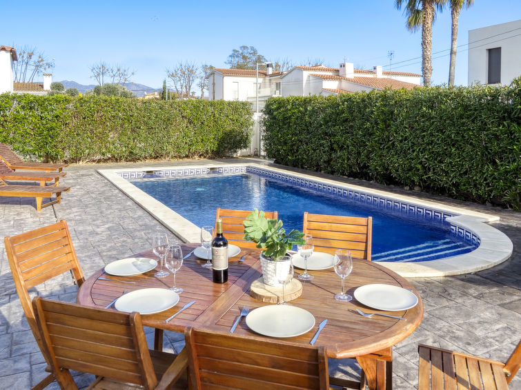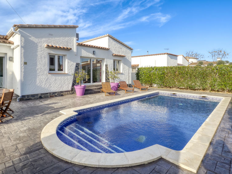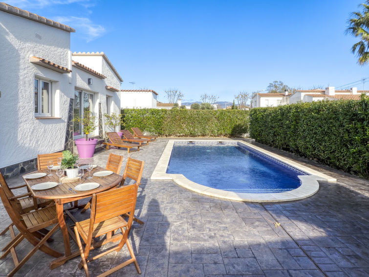 Moderne, koselig, komfortabel enmannsbolig "Montgri". I området Montgri 900 m fra sentrum av Empuriabrava, i en roligt, solrikt posisjon boligområde, område med lite trafikk, 1 km fra sjøen, 1 km fra stranden, 500 m fra kanalen, 200 m fra elven. Privat: tomt 400 m2 (inngjerdet), planter, svømmebasseng (8 x 4 m, dybde 160 cm, Sesongåpent: 30.Apr. - 30.Okt.). Utendørs dusj, terrasse, hagemøbler, grill. I huset: biljard. Parkering på tomten. Daglivarehandel, supermarked 300 m, restaurant, bar 200 m, bakeri 300 m, café, internett café 200 m, bussholdeplass 2.7 km, sandstrand "Empuriabrava" 1 km. Sporthavn 1.5 km, golfbane(18 hull) 13 km, tennis 2 km, minigolf 1.5 km, turstier fra hbrukt, sykkelvei 240 m. Attraksjoner i nærheten: Túnel del Viento y aeródromo Skydive 2 km, Parque Acuático Roses 6 km, Museo Dalí Figueres 15 km, Casino y Festival de Perelada 12 km, Ruinas St. Martí Empuries 21 km, Monasterio de Sant Pere de Rodes 23 km.