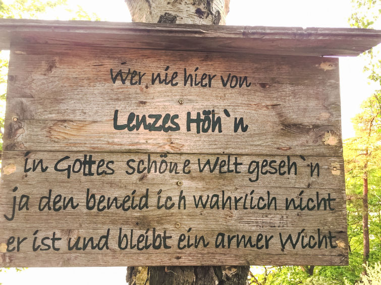 Resort "Lenzer Höh". 39 hus i resorten. 800 m fra sentrum av Lenz, i utkanten, 8 km fra sentrum av Malchow, 15 km fra sentrum av Plau am See, ved en høyde, 100 m fra innsjø. Fellesbruk: tomt med plen og trær. Lekeplass. I anlegget: badstu (ekstra). Bordtennis, vaskemaskin, tørketrommel (for felles bruk ekstra), sykkelutleie. Sentrale parkeringsplasser. Butikk 8 km, supermarked 8 km, strand med gress 100 m. Rideskole 1 km. Attraksjoner i nærheten: Kloster Malchow 8 km, Sommerrodelbahn & Affenwald 12 km.