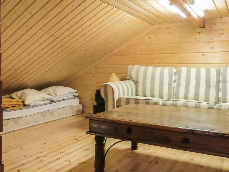 170 km north-west of Helsinki. Log cottage not next to any lake 2011, living room/kitchen, 2 bedrooms 2 beds in each, sauna (wood-burning stove), washroom with 2 showers, dressing room, eco-toilet, 2 sleeping lofts with altogether four mattresses. Underfloor heating in toilet and wash/dressing room.