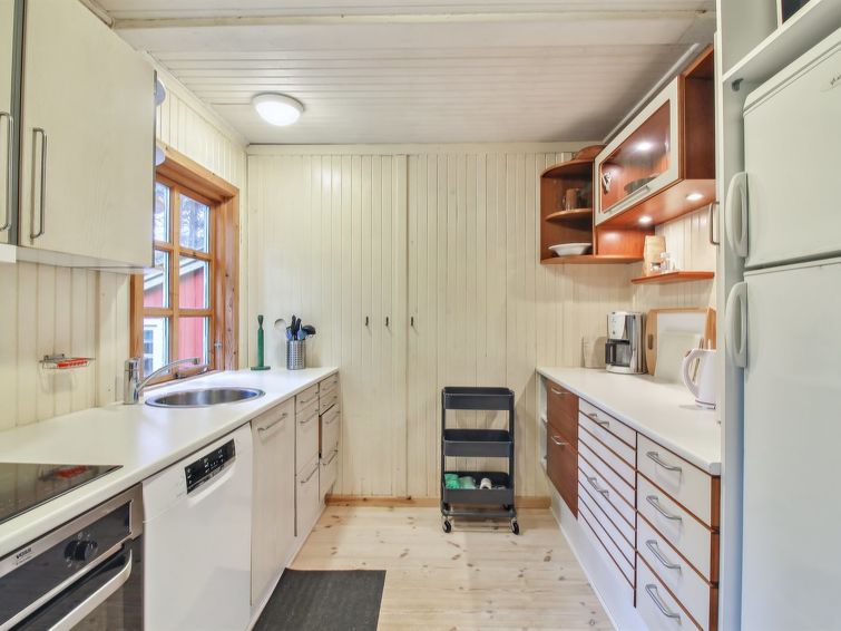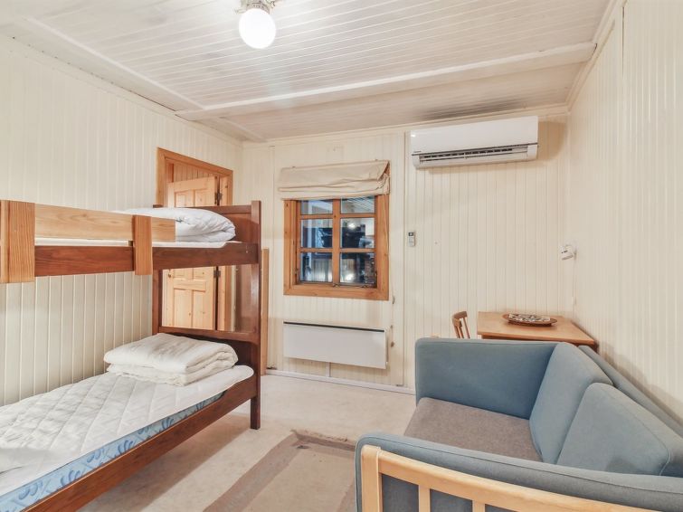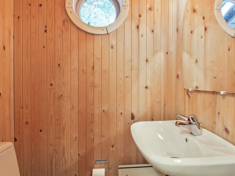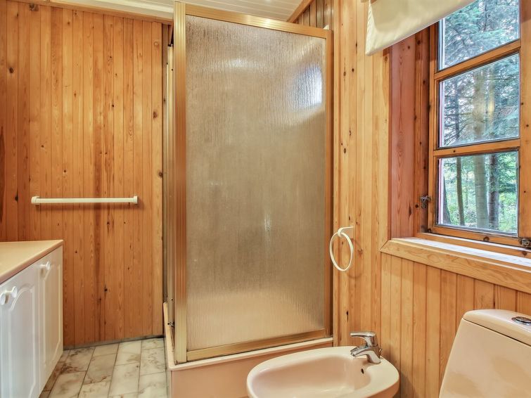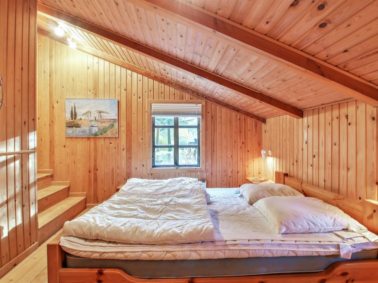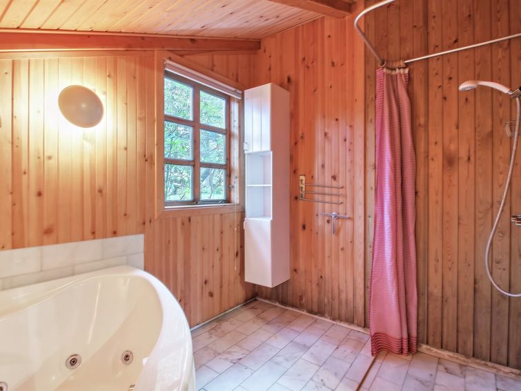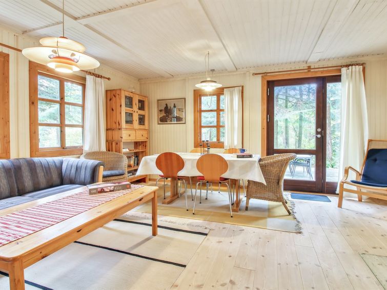 Enmannsbolig, bygget i 1983. 900 m fra sjøen. Privat: uberørt tomt 5'000 m2. Grill. I huset: badstu, vaskemaskin, tørketrommel. Parkering ved hbrukt. Daglivarehandel 500 m. Golfbane 3.7 km. Eieren godtar ikke noen ungdomsgrupper.