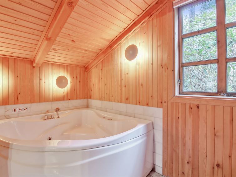 "Muriel" - 900m from the sea in NW Jutland", 3 rom hus 108 m2. Passer for 6 voksne + 1 barn. Stue med, TV og radio. 1 rom med, 1 dobbeltseng. 1 rom med, 1 dobbeltseng. 1 rom med, 1 x 2 køysenger. Kjøkken (stekeovn, oppvaskmaskin, 4 keramiske kokeplater, frys). 2 dusjer/WC, boblebad. Fasiliteter: høy barnestol barneseng (ekstra). Internett (trådløs LAN [WLAN]). Vennligst merk: røykfri bolig. Max kjæledyr/små hunder tillatt 2 kjæledyr/små hunder tillatt.