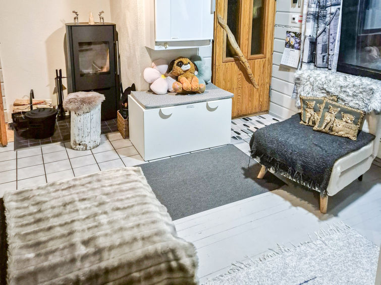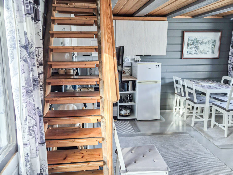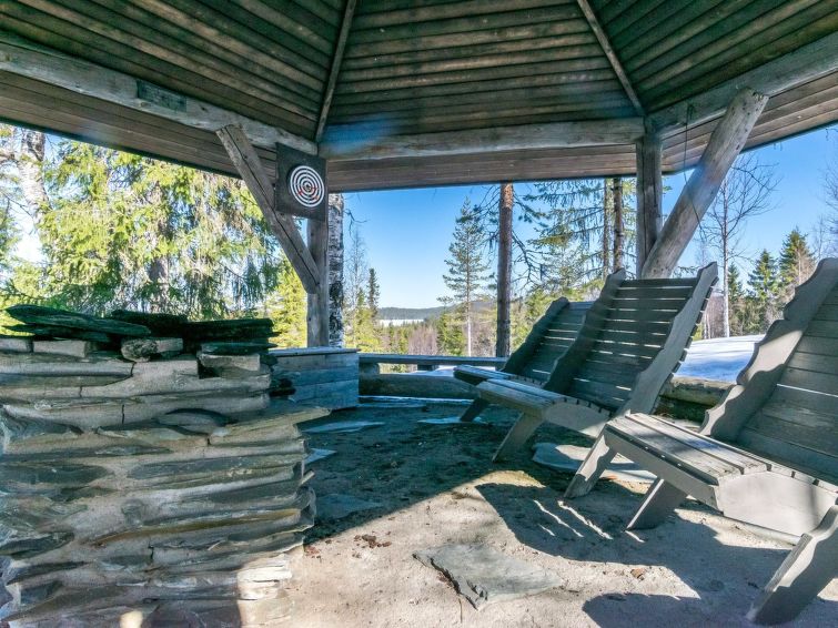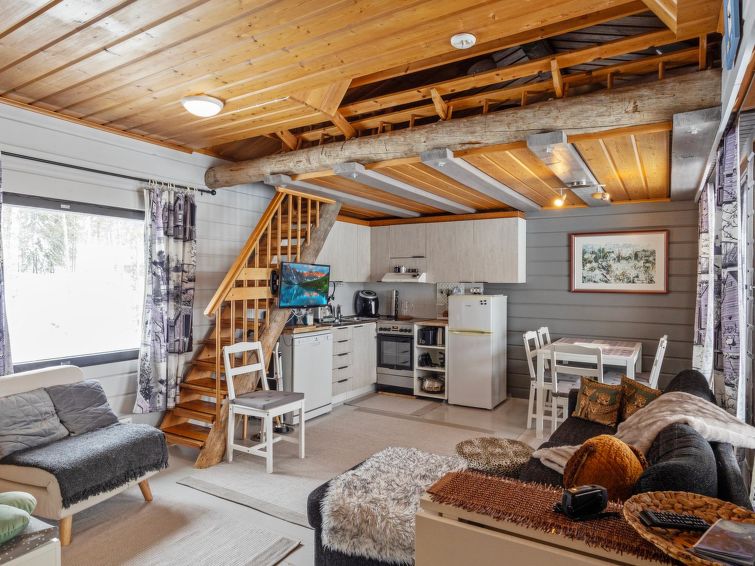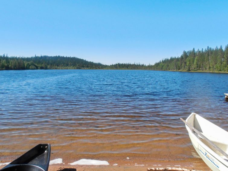 20km north of Kuusamo, Ruka 7km, Mustalampi pond 100m, shallow sandy bottom beach, pier. Length of the beach is about 60 m and it's in shared use with 3 other cottages. Rowing boat, 2 canoes and pedal boat in shared use