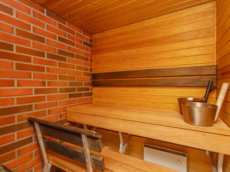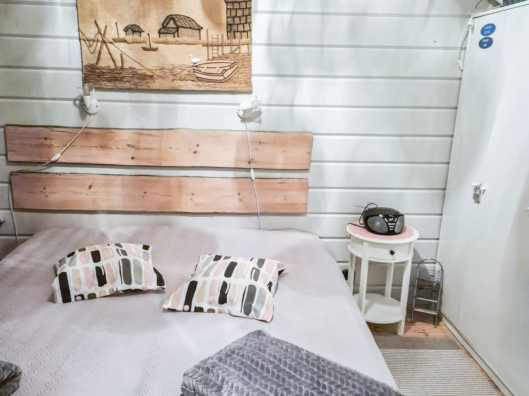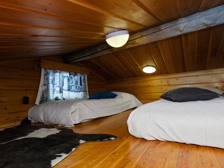 Log-panelled cottage, built in 1988, bedroom: double bed and extra bed, living room: convertible bed, sleeping loft (10 m²): 3 mattresses, combined kitchen/living room, electric sauna.