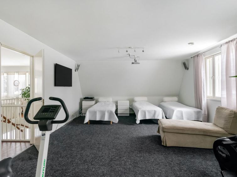 High-speed Internet access (100 MB), 5 TV's, video projector, karaoke equipment, home theater, about 200 dvd:s (most in english), piano, play equipment and trampoline in the yard.