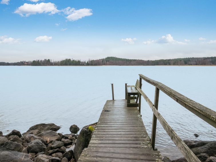 37 km to the north from Hämeenlinna, lake Iso-Roine 20 m (length 8 km, width 2 km), rocky bottom, pier. There are steep stairs starting in front of the cabin to the pier. Nature trail to the pier, where you can go swimming by stairs. Not children-friendly shore. Due to the rocky bottom, access for swimming from the beach is a bit challenging. 200 m to a fine common children-friendly sand beach (shared with neighboring cabins).
