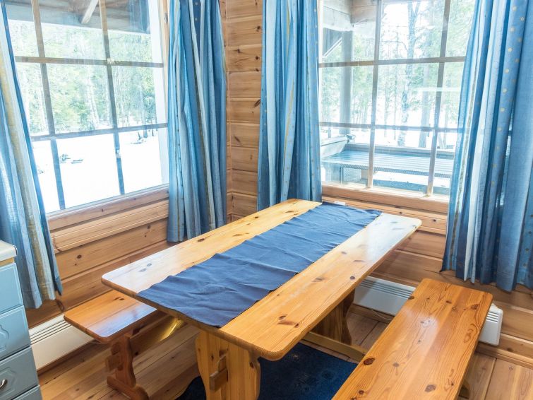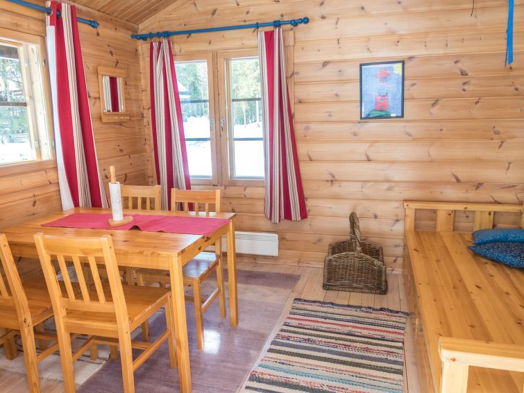 Reservations start at 17.00 and end at 12.00 (also in weekend bookings). A classy 2007 built cabin with privacy, but yet close to services in Ruka and Kuusamo. The lake is good for fishing, the rent includes 5 licences for fishing with nets (client has to bring own fishing nets). A good access to snowmobile route.