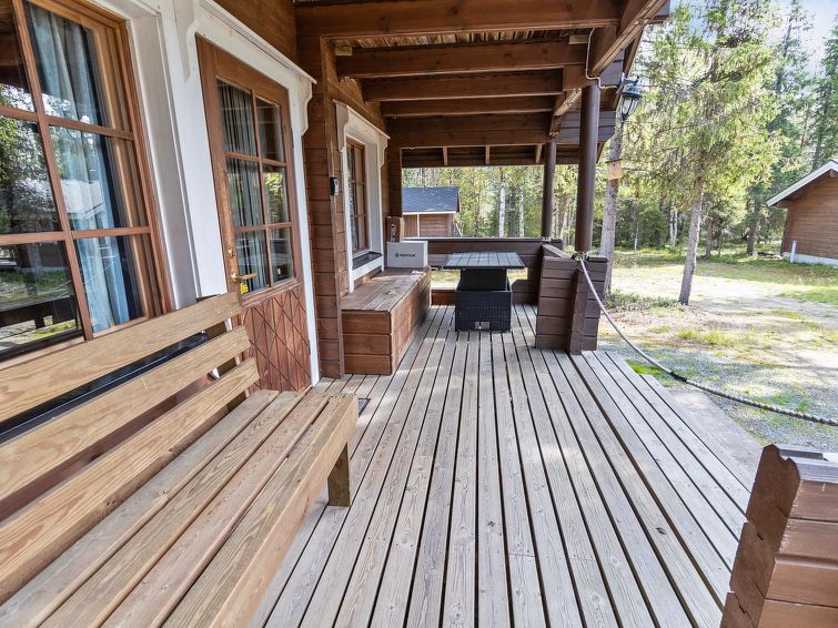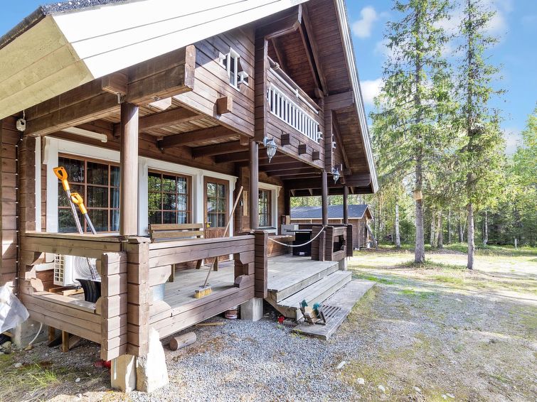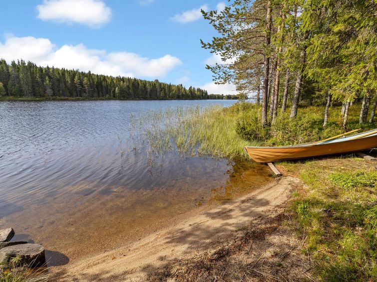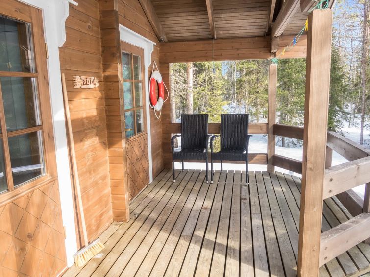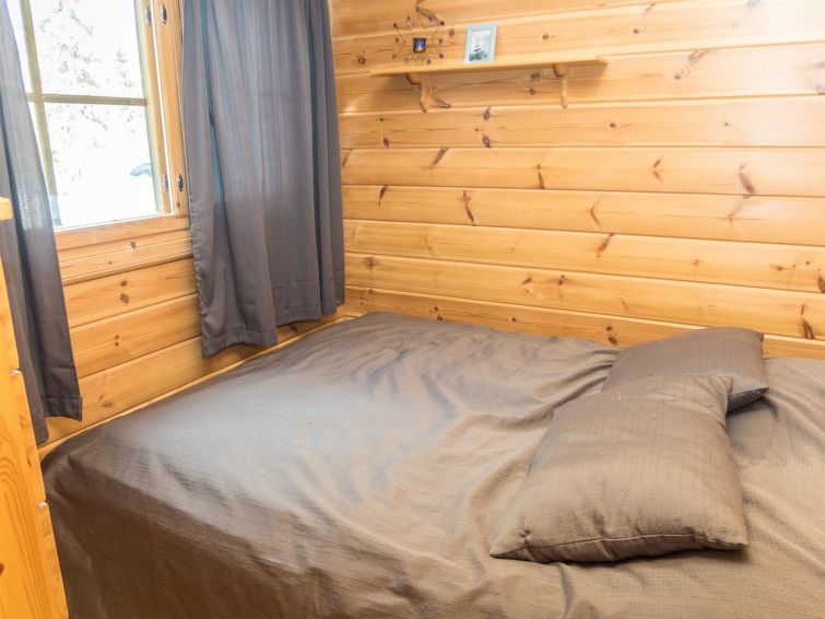 11 km North of Kuusamo, 30 m to Lake Nissinjärvi (length 4 km, width 400 m), shallow lake with hard sandy bottom, pier, own boat. Cottage is built 2007, located between Ruka and Kuusamo. Kitchen, 2 bedrooms, one with doublebed, one with one bed (120 cm x 200 cm), 2 extra beds upstairs, open veranda both upstairs and downstairs.