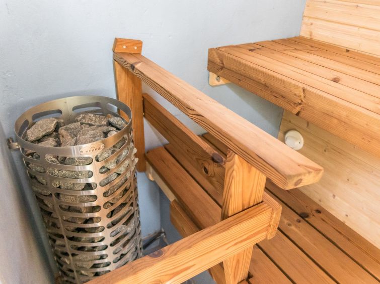 A specific (electrig heating) sauna on the beach (20 m²) with lounging space.