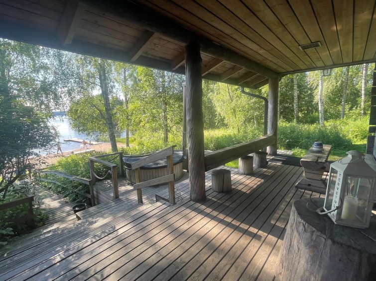 Spacious and atmospheric log villa, suits well for year-round holidays. There is also a separate lakeside sauna with hot tub, smoke sauna and normal sauna for rent.