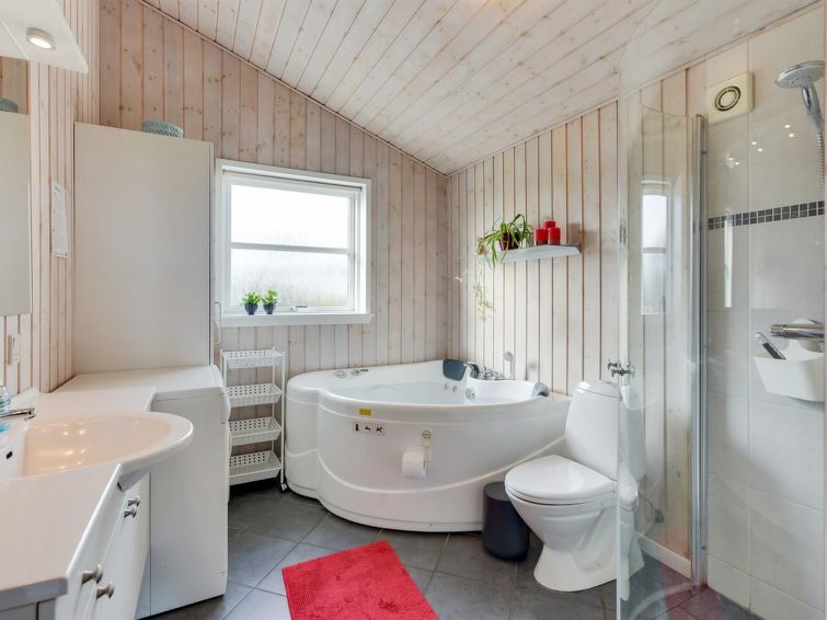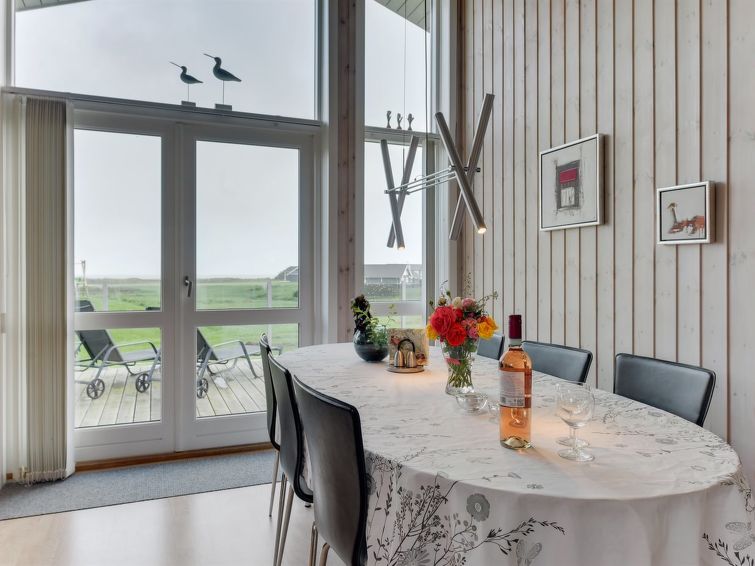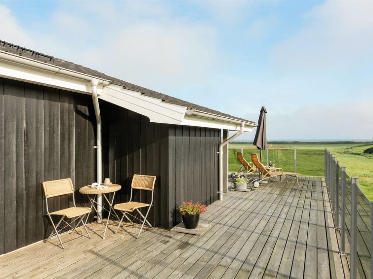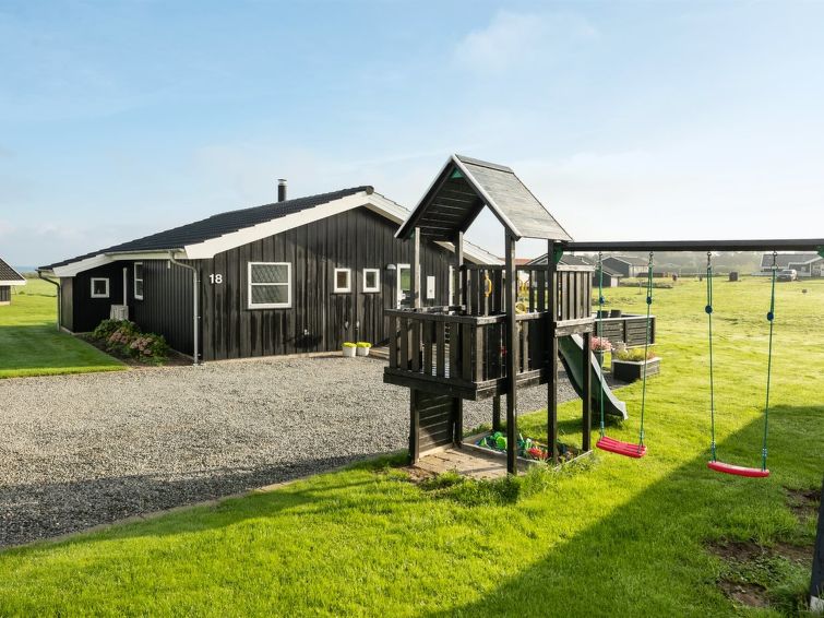 Enmannsbolig, bygget i 2006. 200 m fra sjøen. Privat: uberørt tomt 820 m2. Terrasse (100 m2), grill, lekeplass (rutsjebane, huske). I huset: badstu, vaskemaskin, tørketrommel. Parkering ved hbrukt. Daglivarehandel 3 km. Golfbane 4 km. Eieren godtar ikke noen ungdomsgrupper.