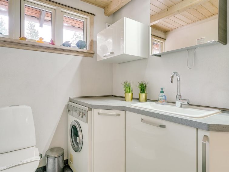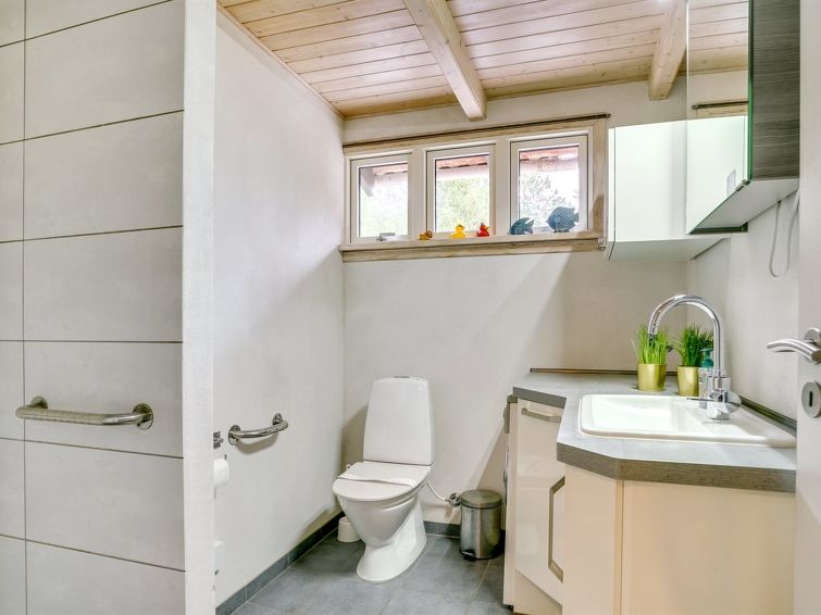 Enmannsbolig, bygget i 1972. 3.5 km fra sjøen. Fellesbruk: hage. Privat: uberørt tomt 2'500 m2, hage (inngjerdet). Terrasse (39 m2), lekeplass (huske). I huset: vaskemaskin. Parkering ved hbrukt. Daglivarehandel 4.3 km. Eieren godtar ikke noen ungdomsgrupper.