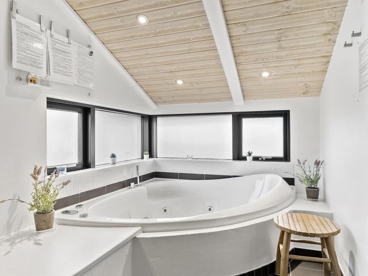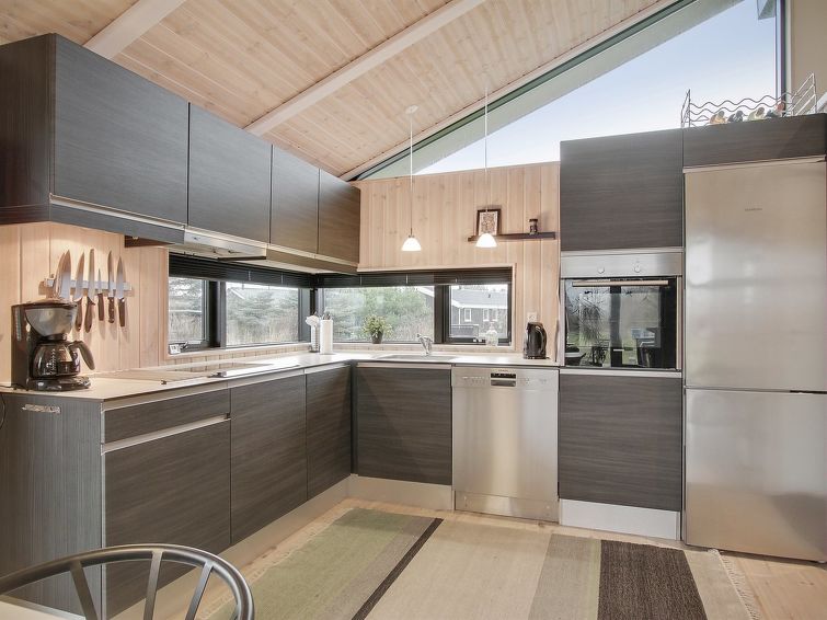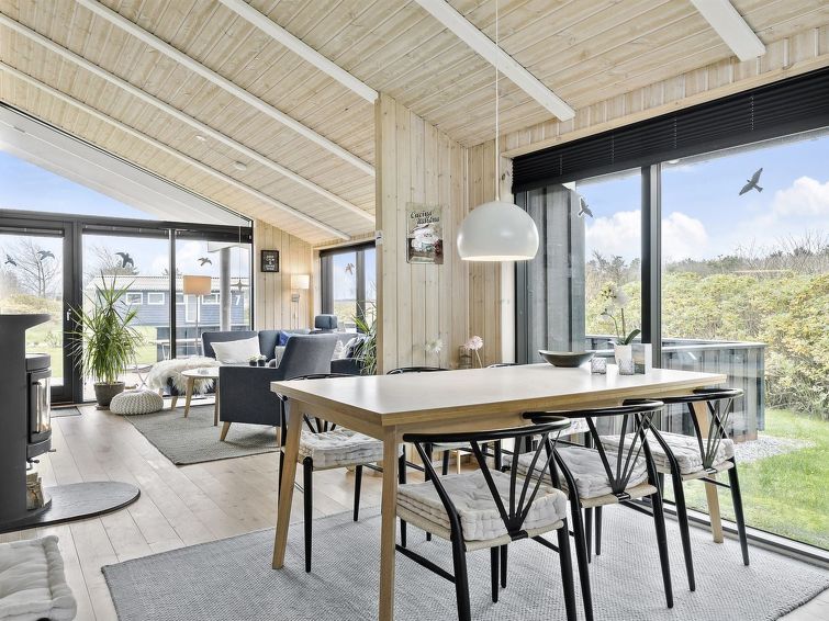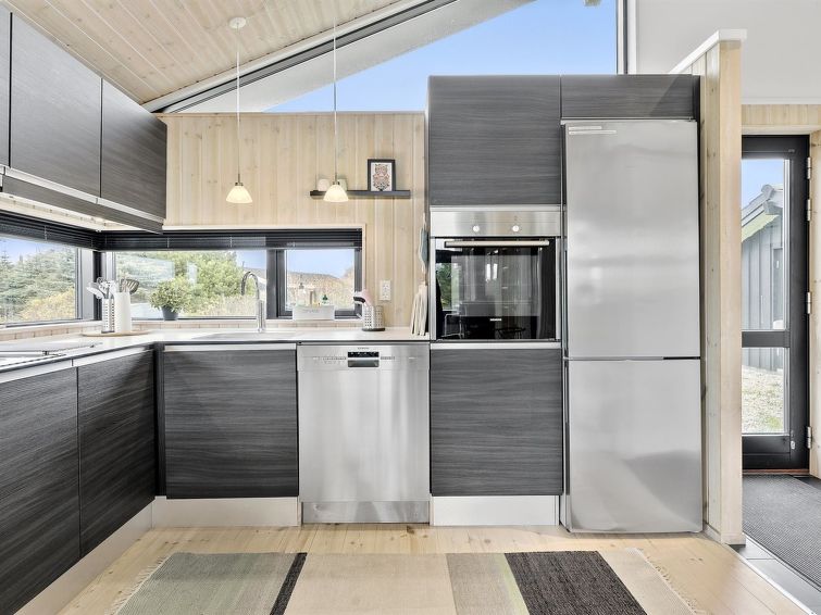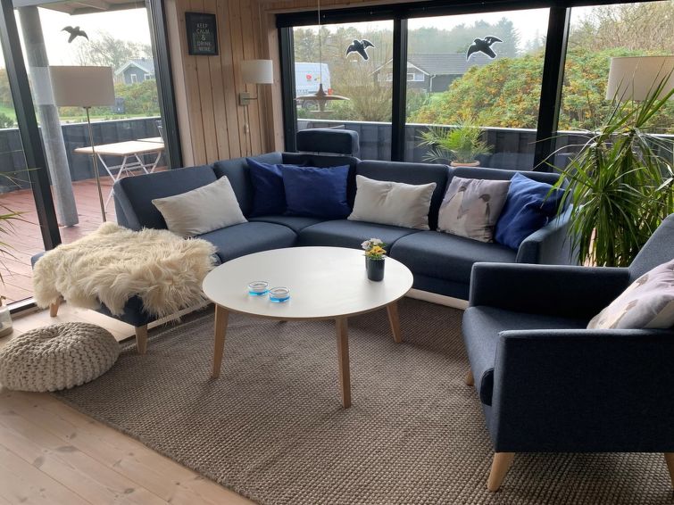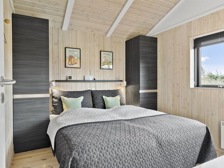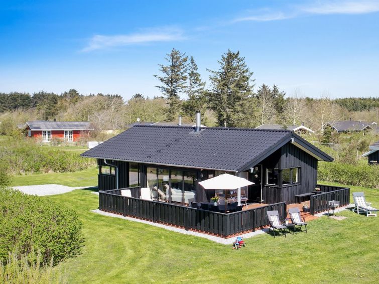 "Natalija" - 975m from the sea in NW Jutland", 3 rom hus 85 m2. Passer for 6 voksne + 1 barn. Stue med, TV, radio og DVD. 1 rom med, 1 dobbeltseng. 1 rom med, 1 dobbeltseng. 1 rom med, 2 x 2 køysenger. Kjøkken (stekeovn, oppvaskmaskin, 4 keramiske kokeplater, mikrobølgeovn, frys). Dusj/WC, boblebad. Terrasse 8 m2, dekt. Fasiliteter: høy barnestol barneseng (ekstra). Internett (trådløs LAN [WLAN]). Vennligst merk: røykfri bolig.