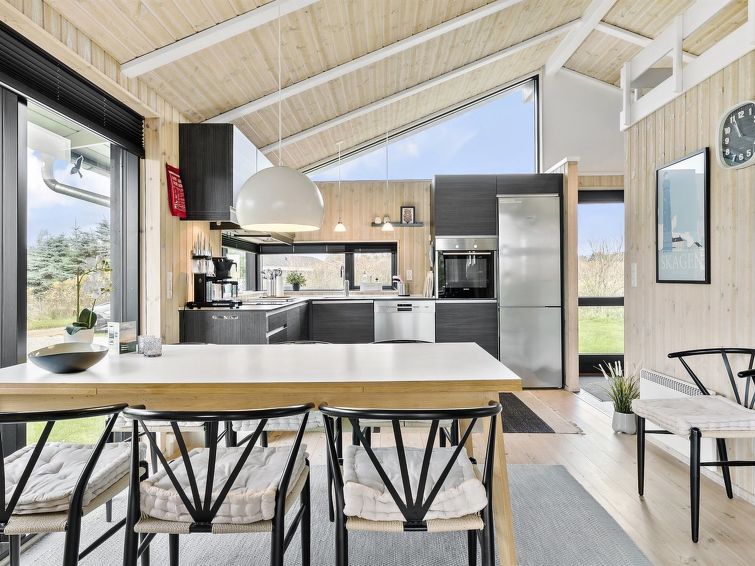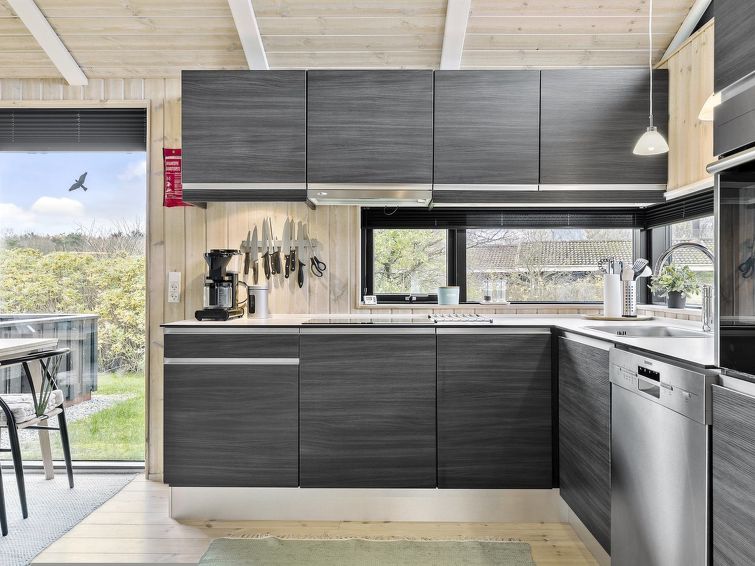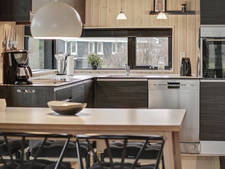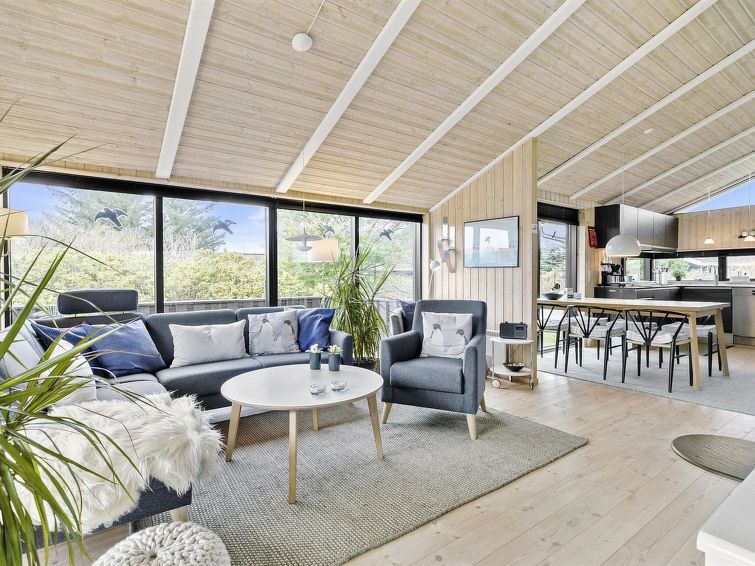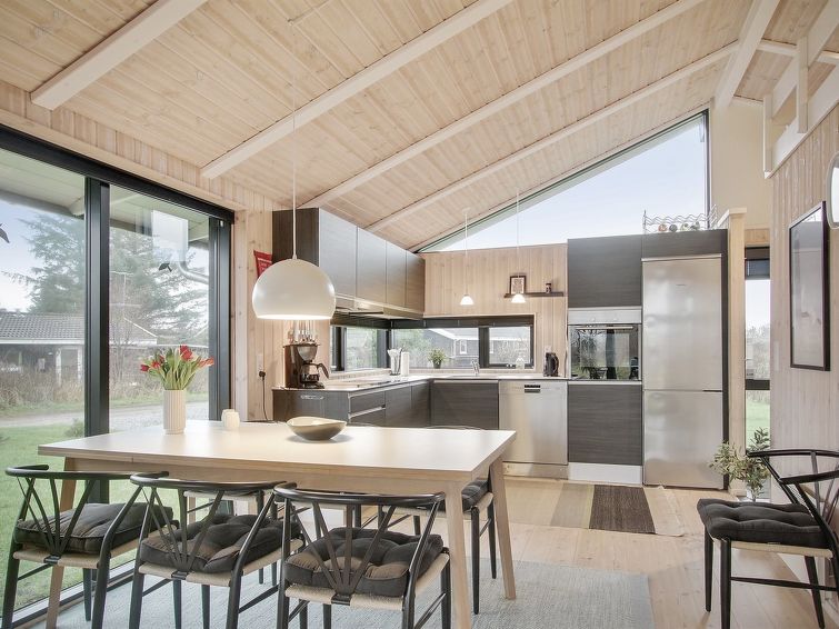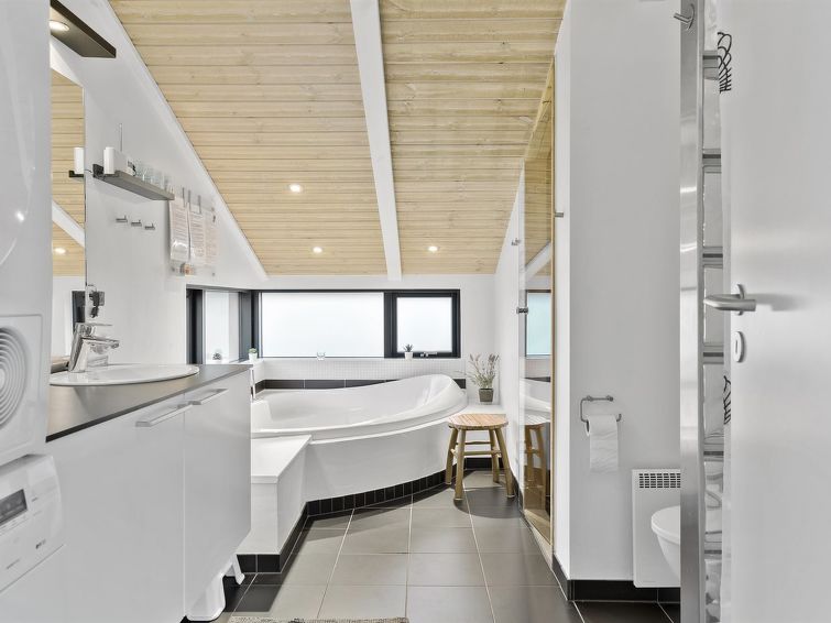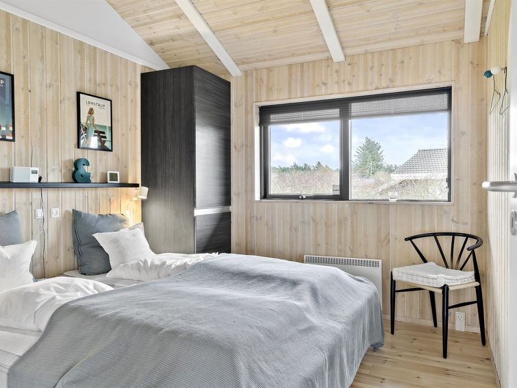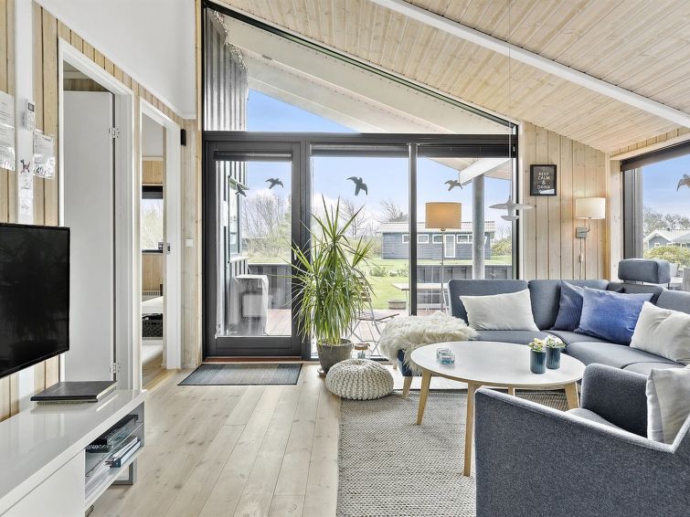"Natalija" - 975m from the sea in NW Jutland", 3 rom hus 85 m2. Passer for 6 voksne + 1 barn. Stue med, TV, radio og DVD. 1 rom med, 1 dobbeltseng. 1 rom med, 1 dobbeltseng. 1 rom med, 2 x 2 køysenger. Kjøkken (stekeovn, oppvaskmaskin, 4 keramiske kokeplater, mikrobølgeovn, frys). Dusj/WC, boblebad. Terrasse 8 m2, dekt. Fasiliteter: høy barnestol barneseng (ekstra). Internett (trådløs LAN [WLAN]). Vennligst merk: røykfri bolig.