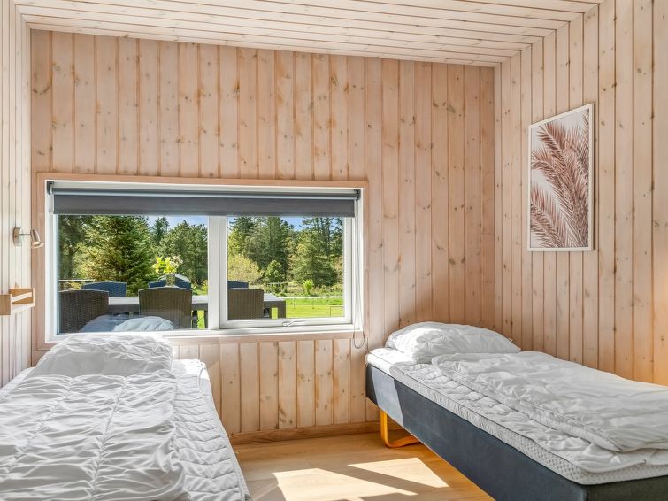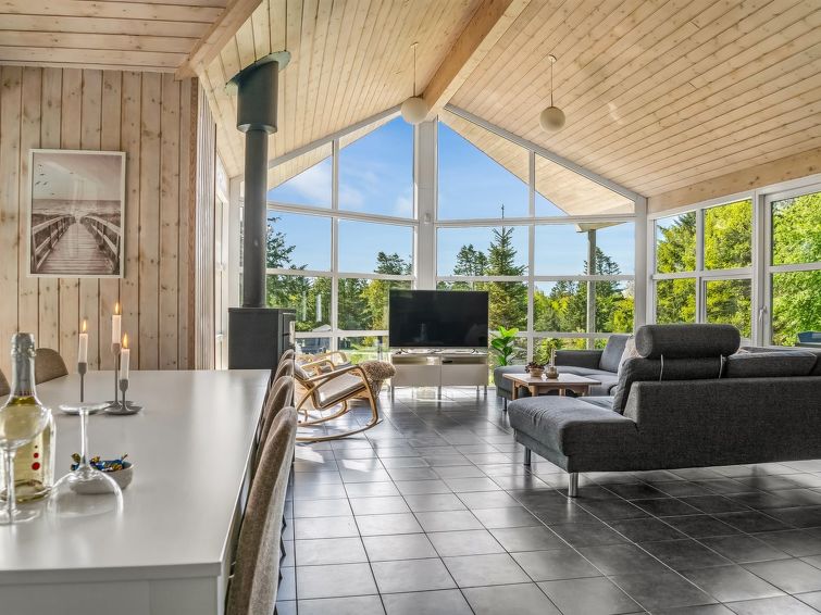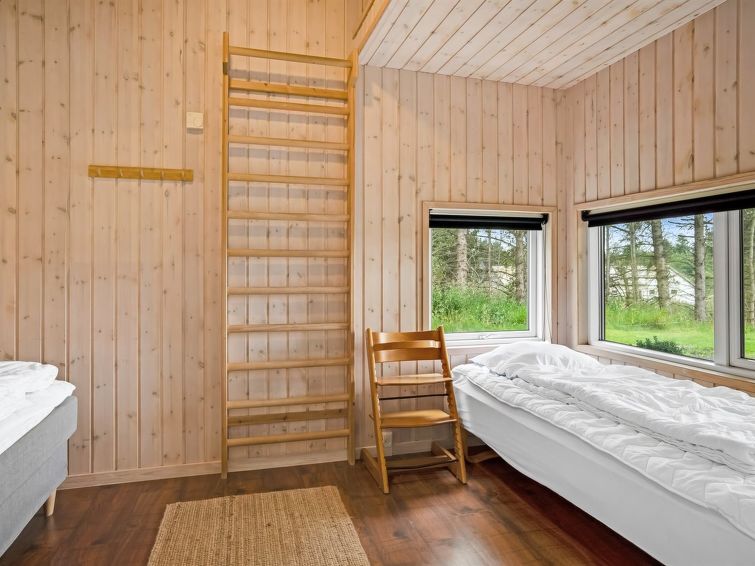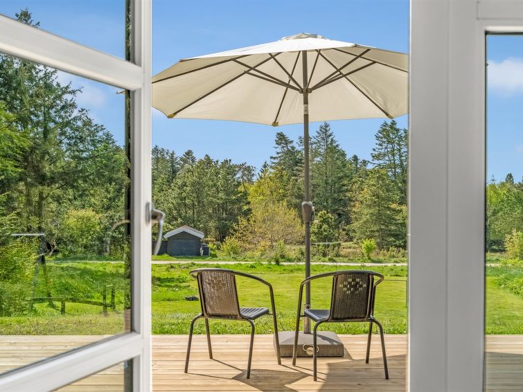"Nayati" - 2km from the sea in NW Jutland", 4 rom hus 150 m2. Passer for 8 voksne. Stue med, TV og CD-spiller. 1 rom med, 1 sovesoffa og 1 dobbeltseng. 1 rom med 1 seng og 1 dobbeltseng. 1 rom med 2 senger. Åpen galleri, 1 rom med, 1 x 2 køysenger. Kjøkken (stekeovn, oppvaskmaskin, 4 keramiske kokeplater, mikrobølgeovn, frys). 2 dusjer/WC. Terrasse 10 m2, dekt. Fasiliteter: høy barnestol. Internett (trådløs LAN [WLAN]). Vennligst merk: røykfri bolig. Max kjæledyr/små hunder tillatt 2 kjæledyr/små hunder tillatt.