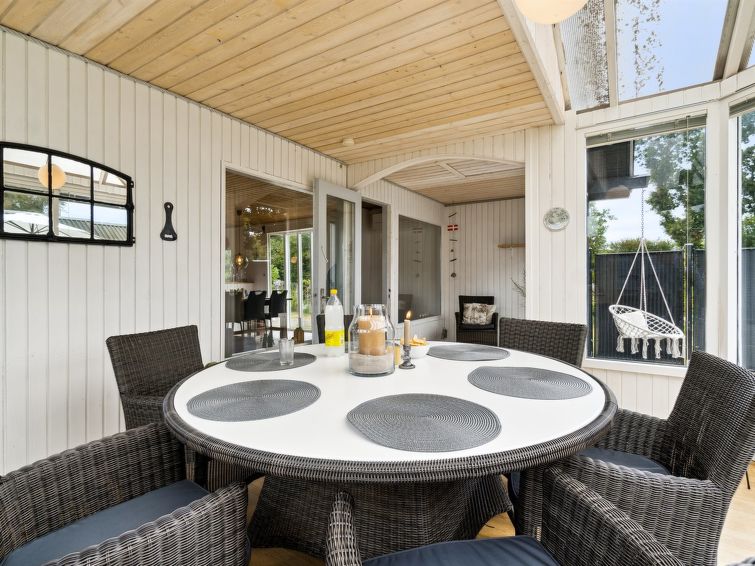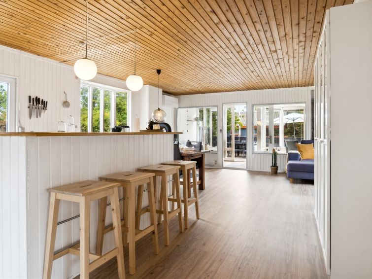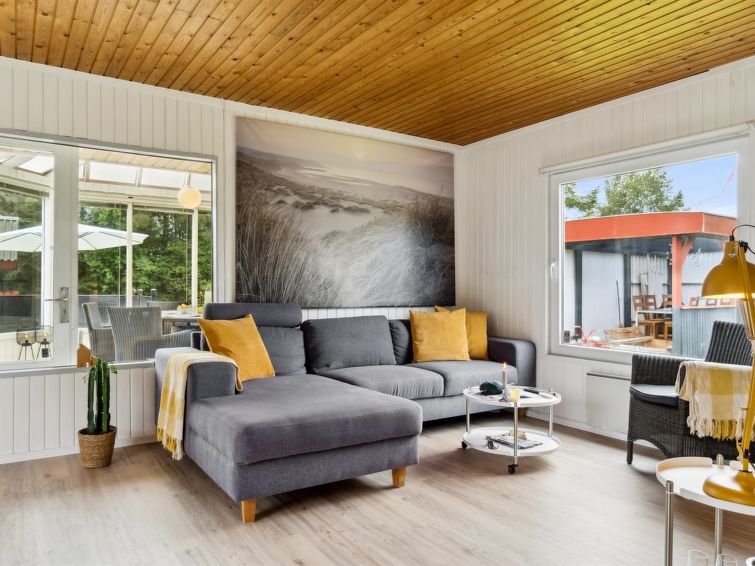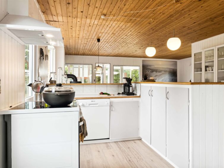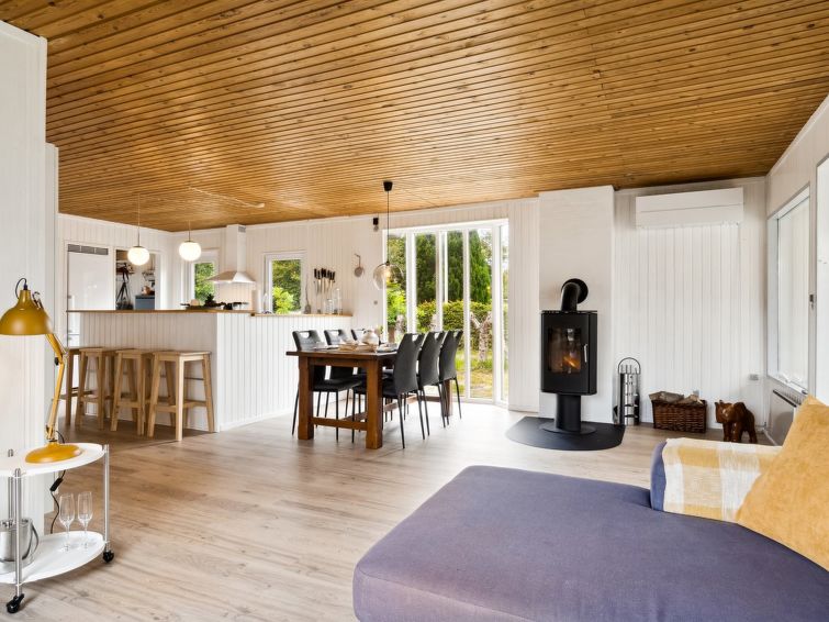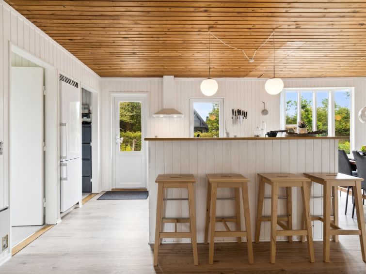 "Neea" - 280m from the sea in NE Jutland", 3 rom hus 86 m2. Passer for 6 voksne + 1 barn. Stue med, TV. 1 rom med, 1 dobbeltseng. Studio 1 rom med med, 1 dobbeltseng. Kjøkken (stekeovn, oppvaskmaskin, 4 keramiske kokeplater, frys). Dusj/WC. Drivhus. Fasiliteter: høy barnestol barneseng (ekstra). Internett (trådløs LAN [WLAN]). Vennligst merk: røykfri bolig.