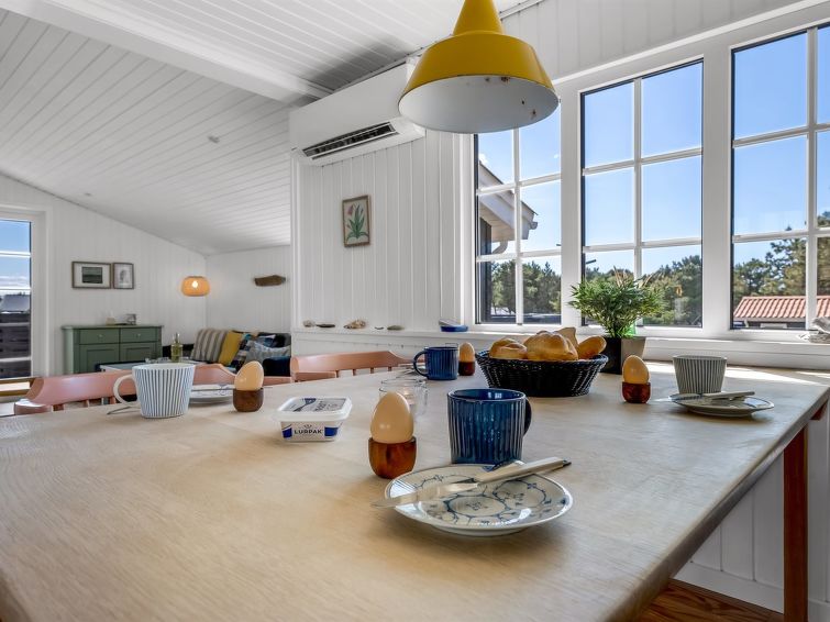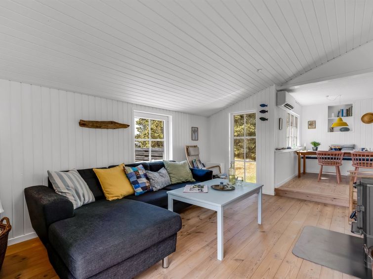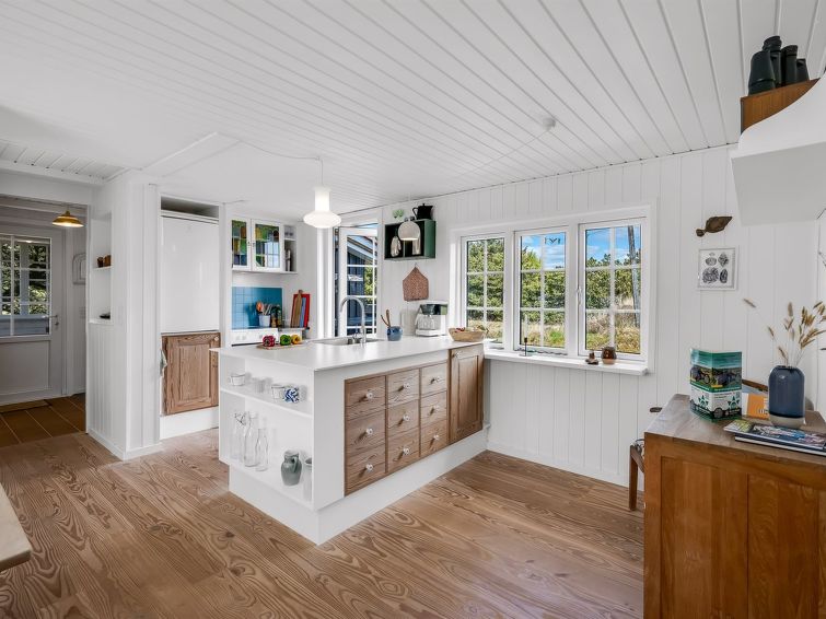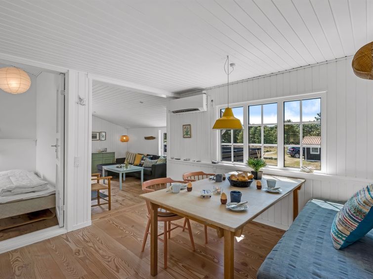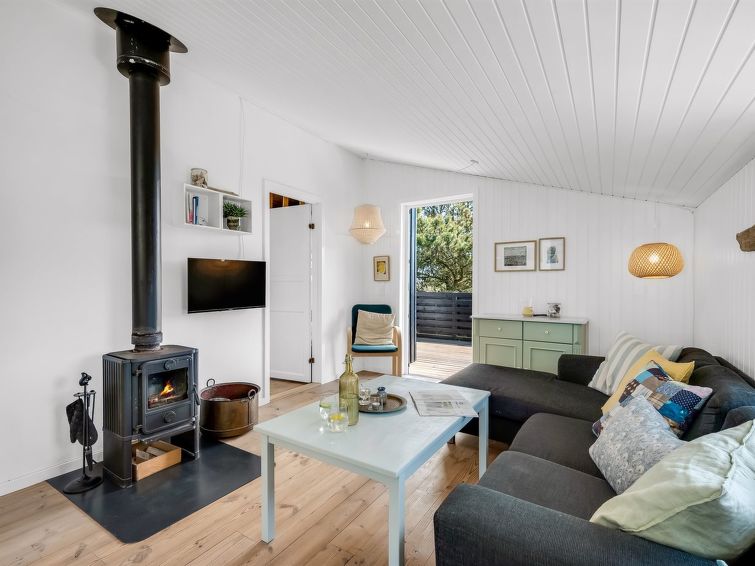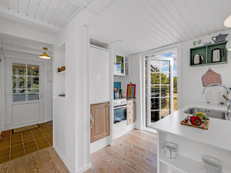 "Neija" - 800m from the sea in Western Jutland", 3 rom hus 74 m2. Passer for 6 voksne. Stue med, TV. 1 rom med, 1 dobbeltseng. 1 rom med 2 senger. 1 rom med 2 senger. Kjøkken (4 kokeplater, stekeovn, oppvaskmaskin, frys). Dusj/WC. Terrasse 10 m2, dekt. Fasiliteter: Internett (trådløs LAN [WLAN]). Vennligst merk: røykfri bolig.