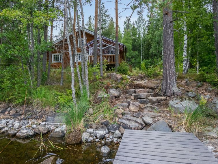 39 km east of Mikkeli, lake Saimaa/Luonteri 25 m, shallow and deep water, hard sanded bottom, pier and rowing boat.