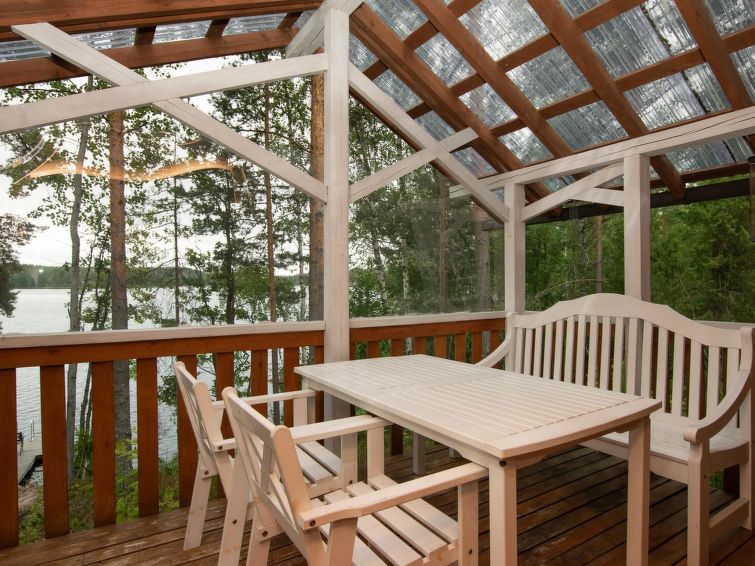 The owner can be asked to rent a 6 hp outboard. Covered cooking area. Wifi internet connection available for extra price 20 euro Gently sloping yard down to shore (narrow path), big stones by shore.