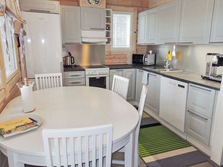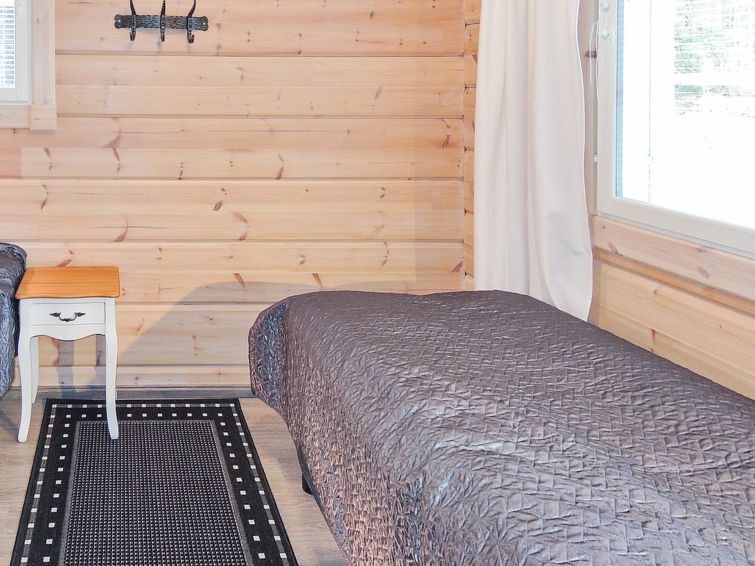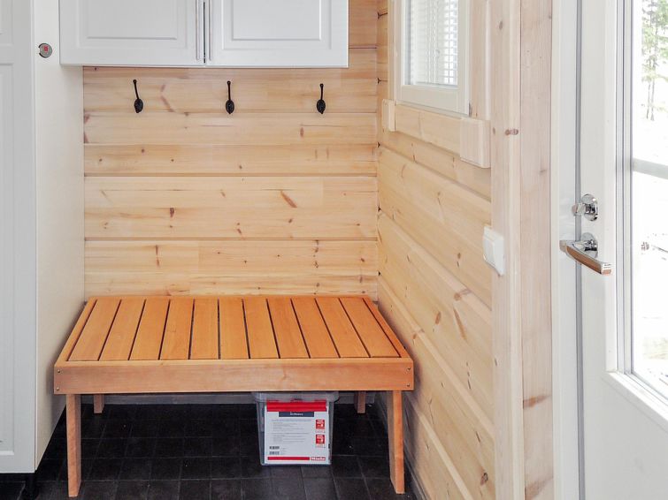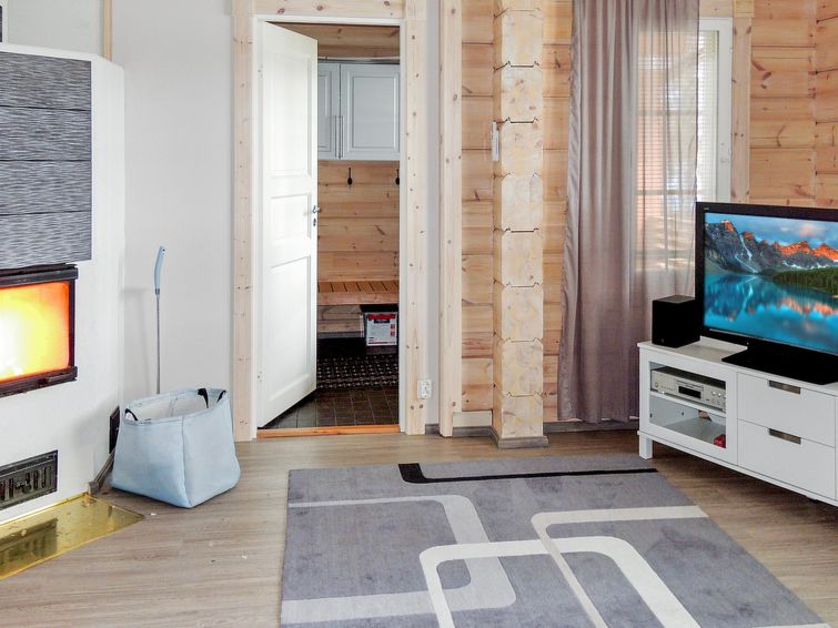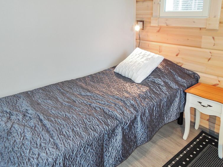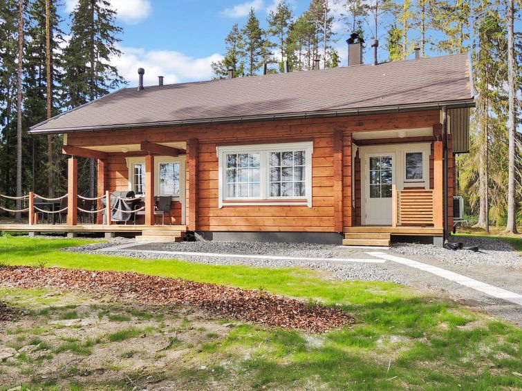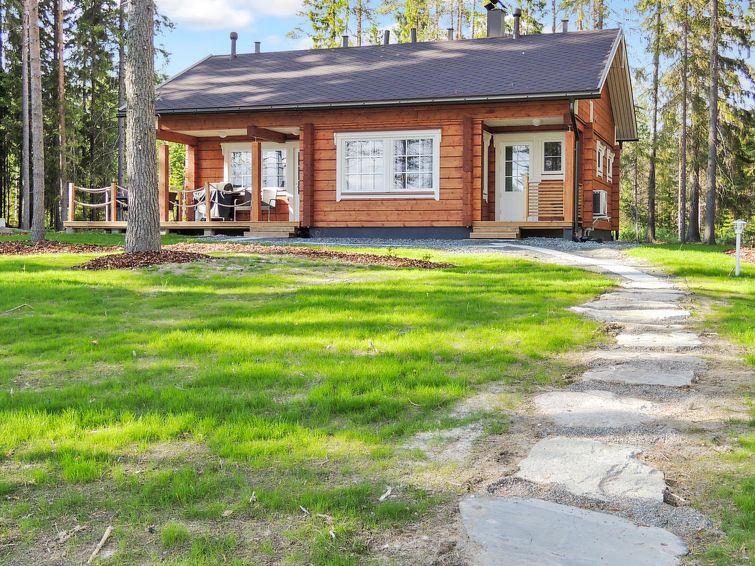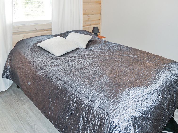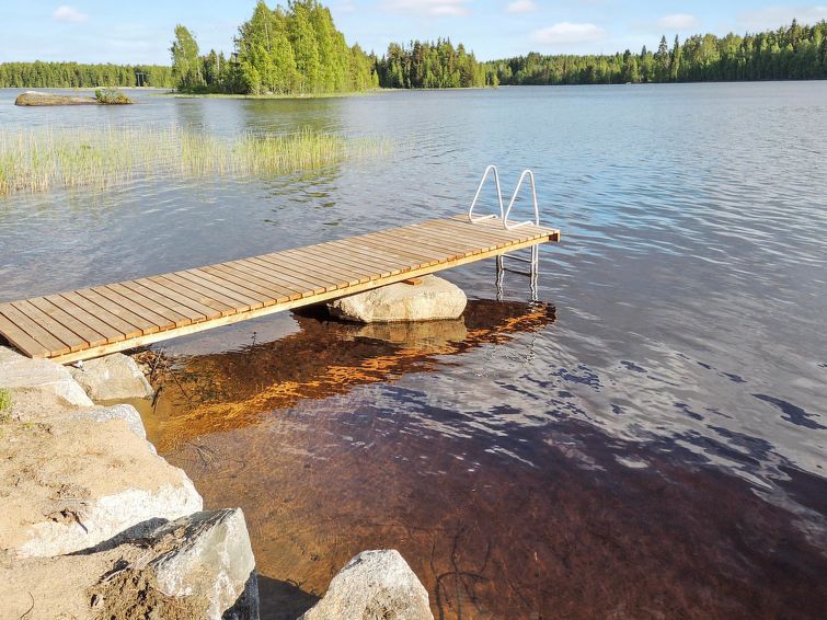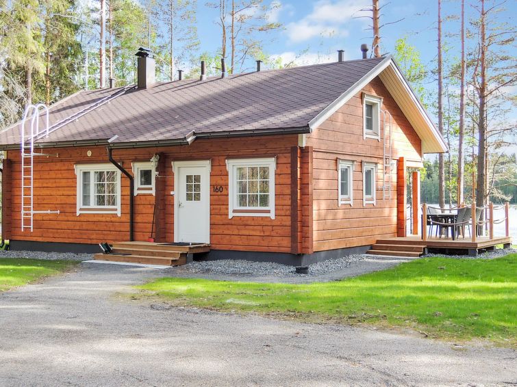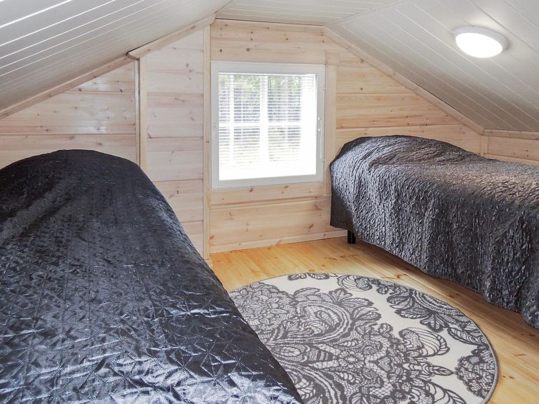 Lake Välivesi 25 m (132,3 ha), own shore, shallow sand bottom and own boat. Log cottage 2017, living room, kitchen, bedroom with double bed width 140 cm, bed room with two beds, sleeping gallery with two beds, dressing room, washroom, terrace.