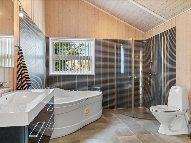 "Ønevus" - 550m from the sea in Funen", 4 rom hus 106 m2. Passer for 8 voksne + 1 barn. Stue med, 1 dobbeltseng, TV, radio, CD-spiller, stereoanlegg og DVD. 1 rom med, 1 dobbeltseng. 1 rom med 2 senger. 1 rom med 2 senger. Kjøkken (stekeovn, oppvaskmaskin, 4 keramiske kokeplater, frys). Dusj/WC, boblebad. Fasiliteter: høy barnestol barneseng (ekstra). Internett (trådløs LAN [WLAN]). Vennligst merk: røykfri bolig.