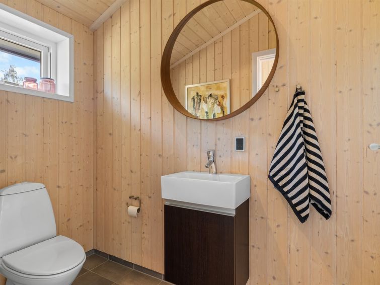 Enmannsbolig, bygget i 2008. 550 m fra sjøen. Privat: tomt 1'334 m2, velholdt hage. Terrasse (100 m2), lekeplass (huske). I huset: vaskemaskin, tørketrommel. Parkering ved hbrukt. Daglivarehandel 550 m. Eieren godtar ikke noen ungdomsgrupper.