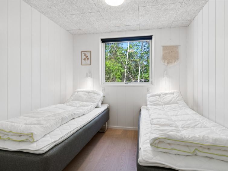 Enmannsbolig, bygget i 2024. 500 m fra sjøen. Privat: uberørt tomt 1'200 m2. Grill. I huset: vaskemaskin, tørketrommel. Parkering ved hbrukt. El-ladestasjon. Daglivarehandel 200 m. Eieren godtar ikke noen ungdomsgrupper.