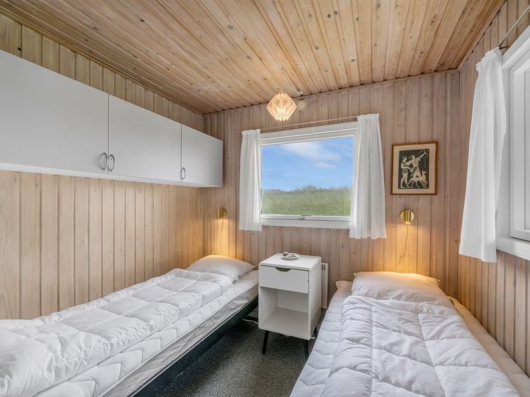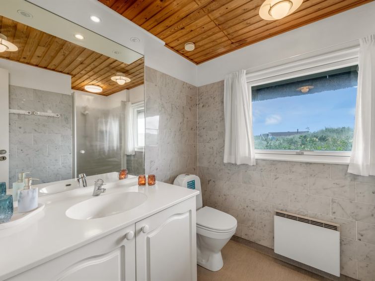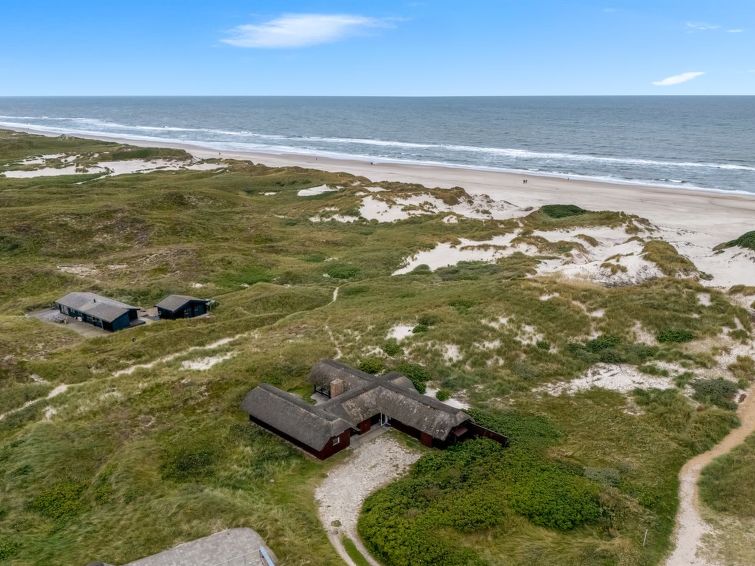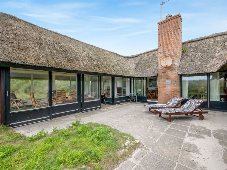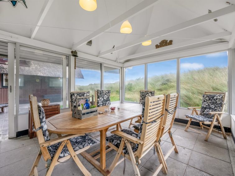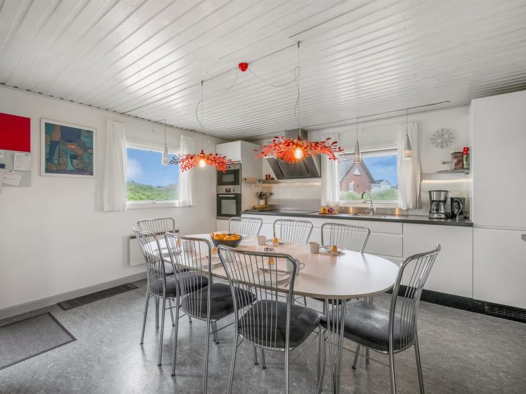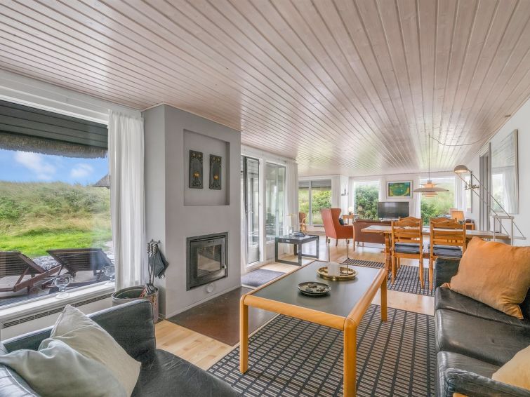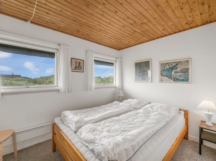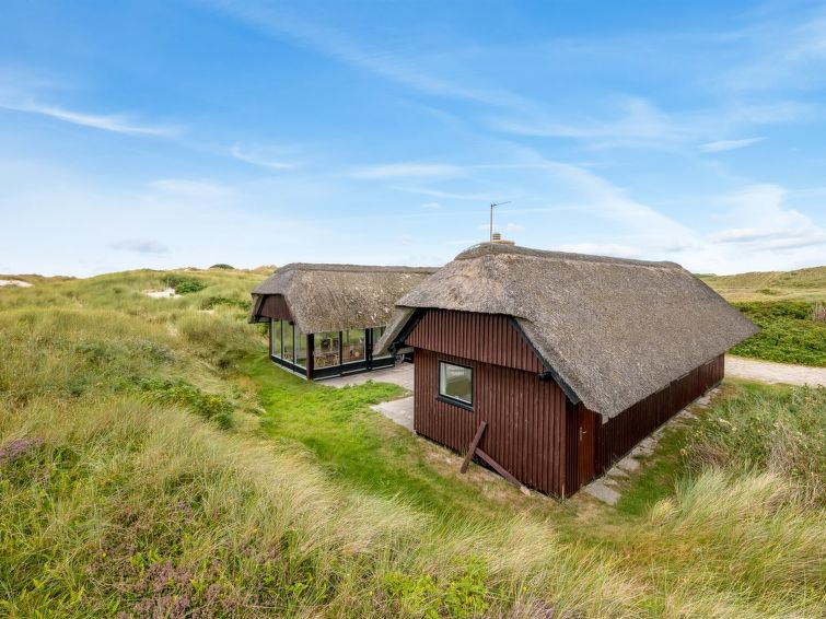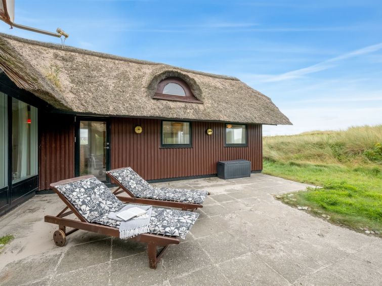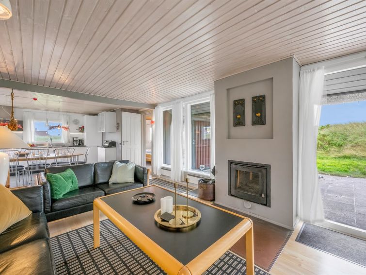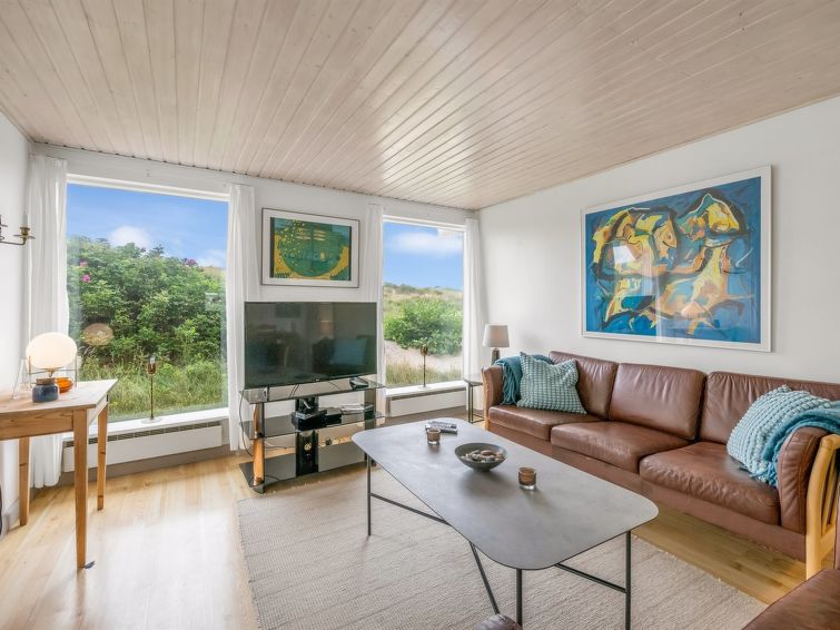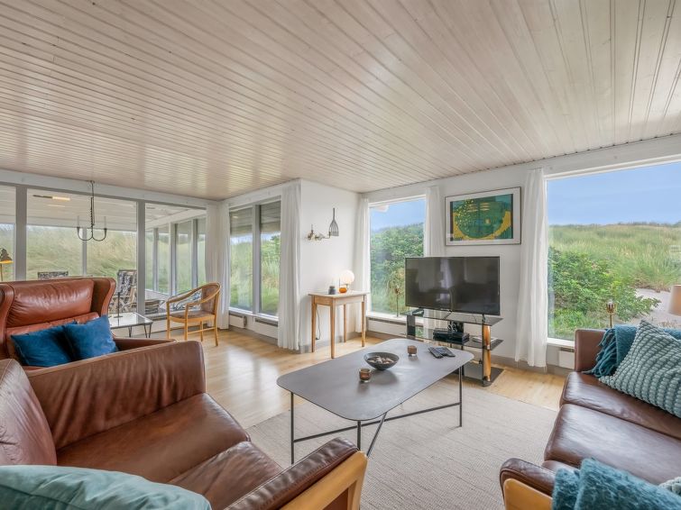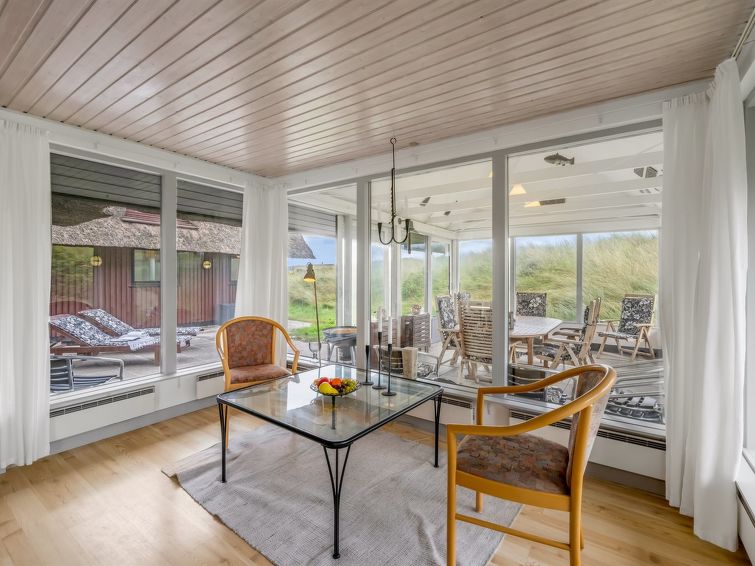 "Nicolaus" - from the sea in Western Jutland", 4 rom hus 135 m2. Passer for 8 voksne. Stue med, TV, CD-spiller, stereoanlegg og DVD. 1 rom med, 1 dobbeltseng. 1 rom med 2 senger. 1 rom med, 1 dobbeltseng. 1 rom med, 1 dobbeltseng. Kjøkken (stekeovn, oppvaskmaskin, 4 induksjonskomfyr, mikrobølgeovn, frys). 2 dusjer/WC. Terrasse 17 m2, dekt. Drivhus. Utsikt av havet. Fasiliteter: Internett (trådløs LAN [WLAN]). Vennligst merk: røykfri bolig.