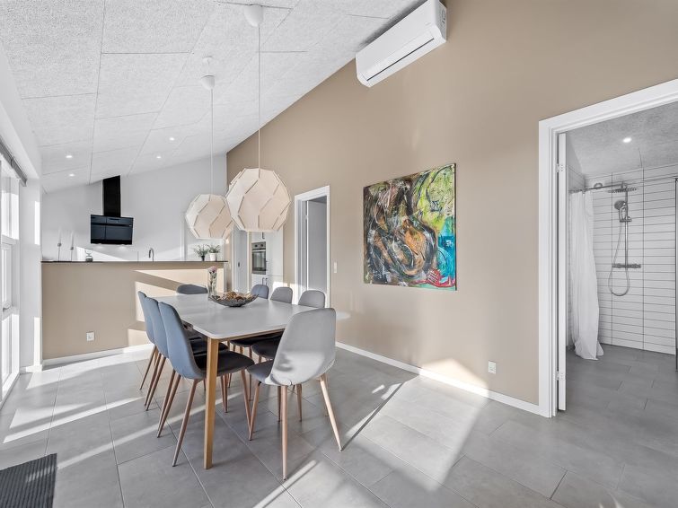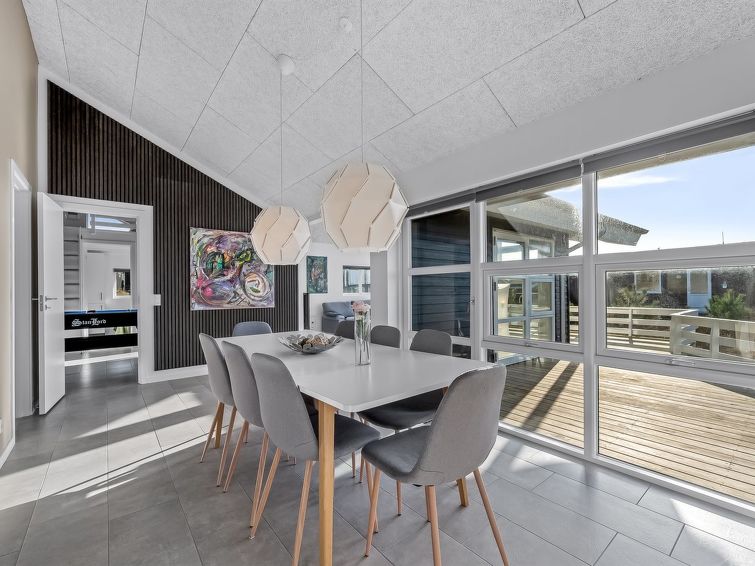 "Niesina" - from the sea in Western Jutland", 3 rom hus 126 m2. Passer for 8 voksne + 1 barn. Stue med, TV, radio, CD-spiller og DVD. 1 rom med, 1 dobbeltseng. 1 rom med, 1 dobbeltseng. Åpen galleri, 1 rom med, 1 dobbeltseng og 2 sovemuligheter. Kjøkken (stekeovn, oppvaskmaskin, 4 keramiske kokeplater, mikrobølgeovn, frys). 2 dusjer/WC, boblebad. Terrasse 15 m2, dekt. Fasiliteter: høy barnestol barneseng (ekstra). Internett (trådløs LAN [WLAN]). Vennligst merk: røykfri bolig.