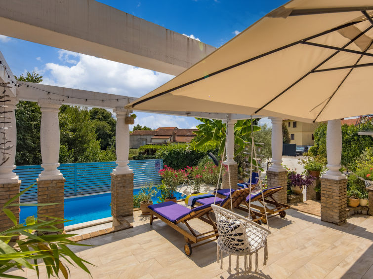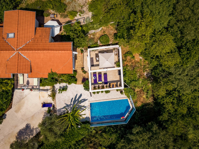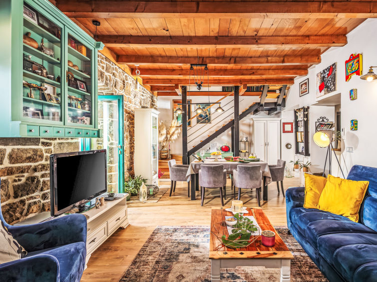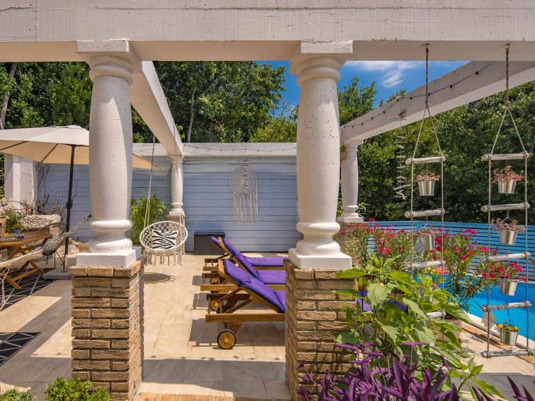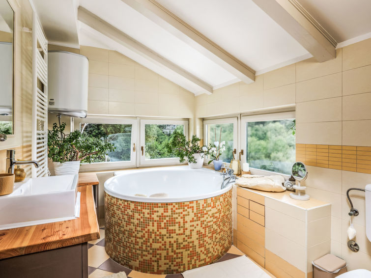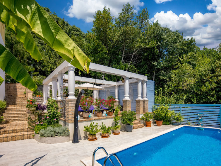 Dobbelthus "Nika", med 2 etasjer. 5 km fra sentrum av Opatija, 2 km fra sentrum av Kastav, 1 km fra sentrum av Matulji, i en roligt, solrikt posisjon, 4 km fra sjøen, 4 km fra stranden, i det grønne. Privat: tomt 950 m2 med planter, svømmebasseng (7 x 4 m, dybde 150 cm, Sesongåpent: 01.Mai. - 01.Okt.) med innebygde trapper. Formet basseng. Utendørs dusj, terrasse (22 m2), hagemøbler, grill. I huset: internetilkobbling, vaskemaskin, tørketrommel. Parkering (for 2 biler) ved hbrukt på tomten. Supermarked 800 m, restaurant 2 km, småstenstrand 4 km, offentlig badeområde 4 km, betonglagt strand 4 km. Deler av hbrukt er avstengte og ubebodde.