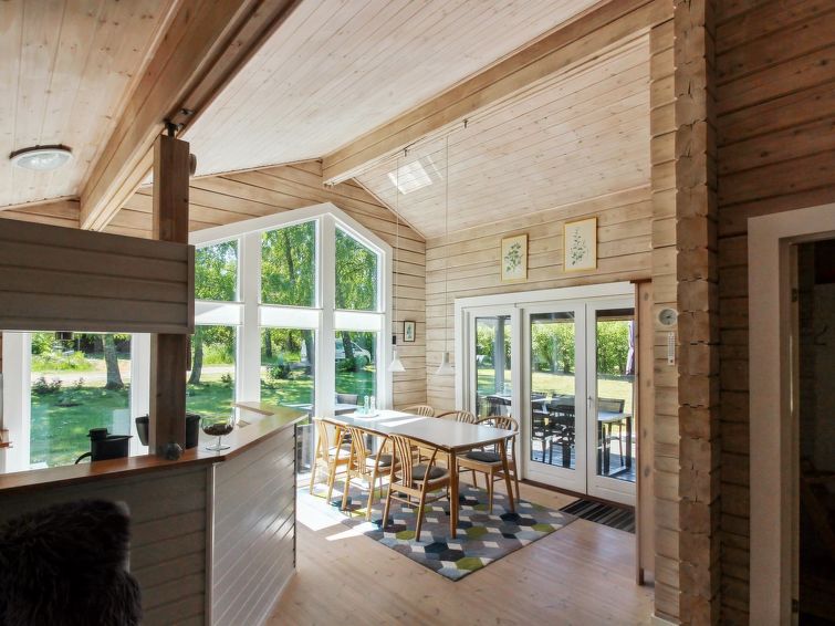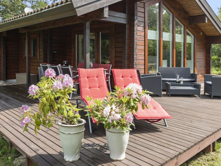 Enmannsbolig, bygget i 2003. 250 m fra sjøen. Privat: uberørt tomt 1'300 m2. Terrasse (20 m2). I huset: badstu, vaskemaskin. Parkering ved hbrukt. El-ladestasjon. Daglivarehandel 6.5 km. Golfbane 4 km. Eieren godtar ikke noen ungdomsgrupper.