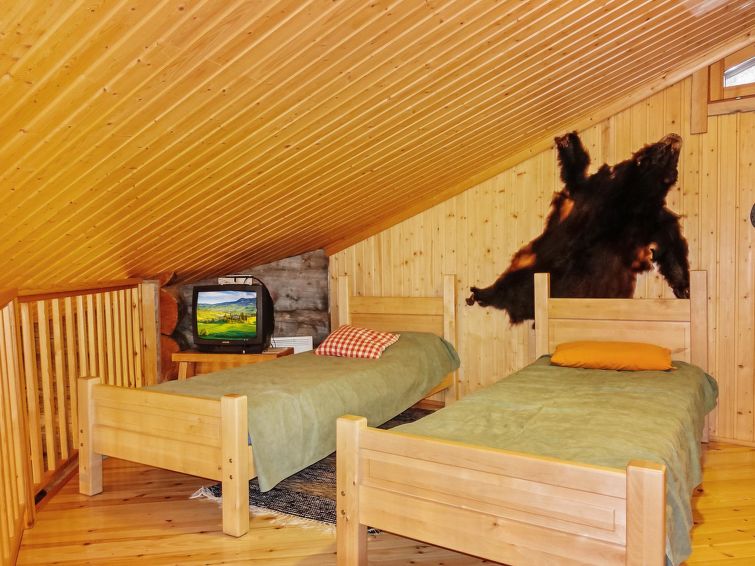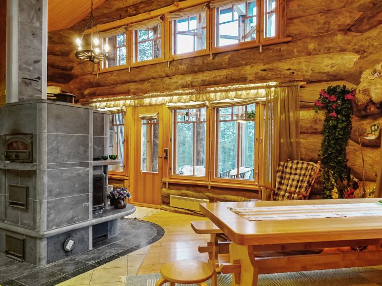 Kelo log villa, built in 2000. Living room kitchen, bedroom with double bed, alcove with double bed, loft with 4 beds in two different compartments, 2 extra mattresses, sauna, washroom/WC, separate WC and glazed terrace.