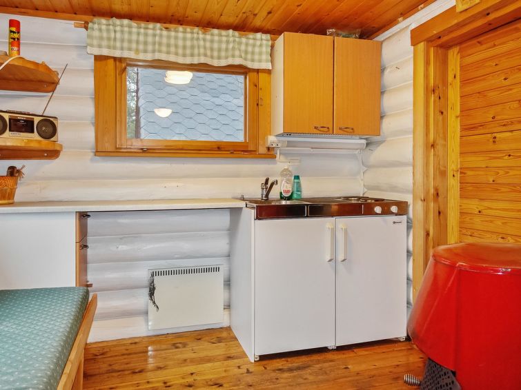 Lakeside sauna (24 m²), available from the beginning of June until the end of September. Wood-burning sauna stove, washroom (2 showers), running water from the lake available in summer (otherwise water must be brought by using bucket) and fireplace hut. Equipment: electric lights, fireplace room with light fireplace and electric heating, 3 beds and kitchenette with sink, fridge and 2 hot plates.