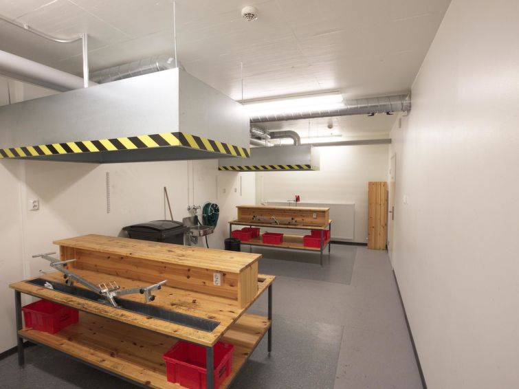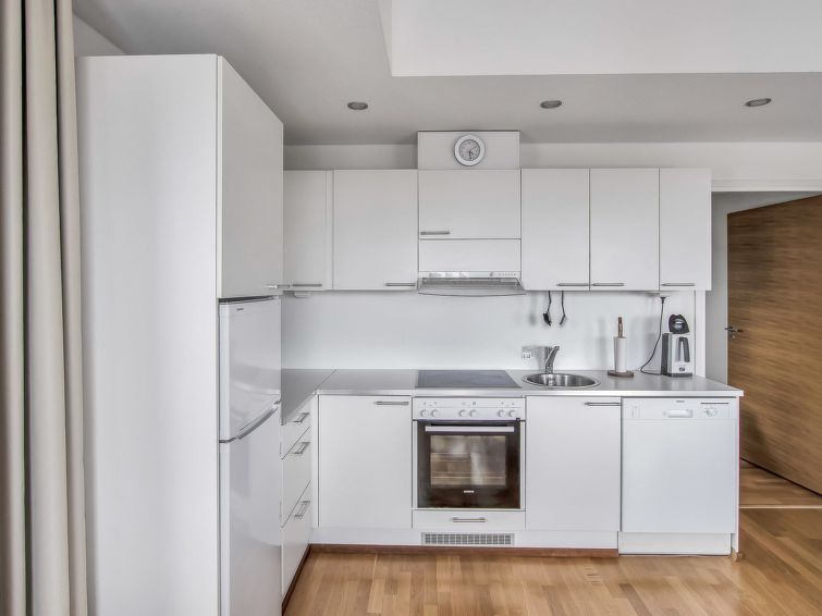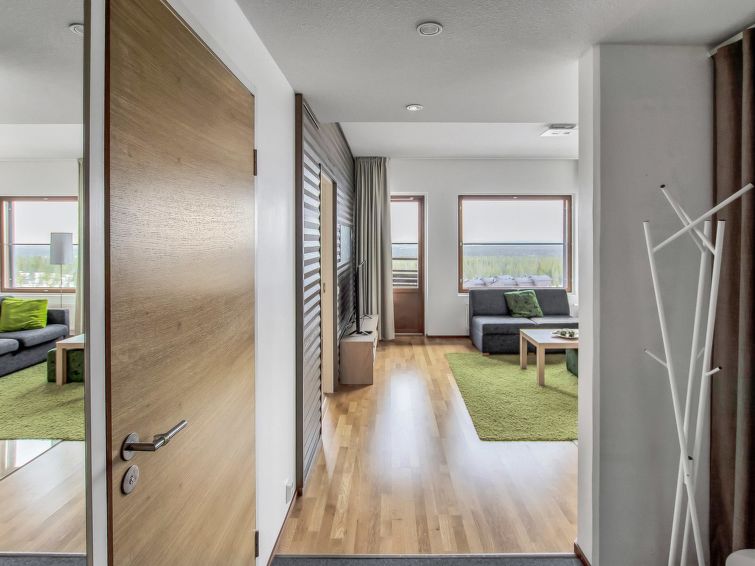 Ski In-Ski Out apartment situated 40 km northeast of Kolari in Ylläsjärvi. Combined living room kitchen, two bedrooms with two seperate beds in both, alcove (no door) with bunkbed, livingroom with bedsofa, sauna, washingroom, seperate toilet, fireplace (Firewoods are not included in the price. Firewoods can be purchased from key service). Wireless internet connection, ski waxing room (not private), storeroom, Apartment is situated in fifth floor, view over Ylläsjärvi village. Good quality Ski In-Ski Out apartment in Ylläsjärvi, in Iso-Ylläs area. The apartment is situated near the gondola lift and Restauran Taiga. Slopes, skiing tracks, hiking routes and night-time activities are easily accesible from the apartment. No pets allowed. Prices include final cleaning and bed linen. Pets are not allowed.