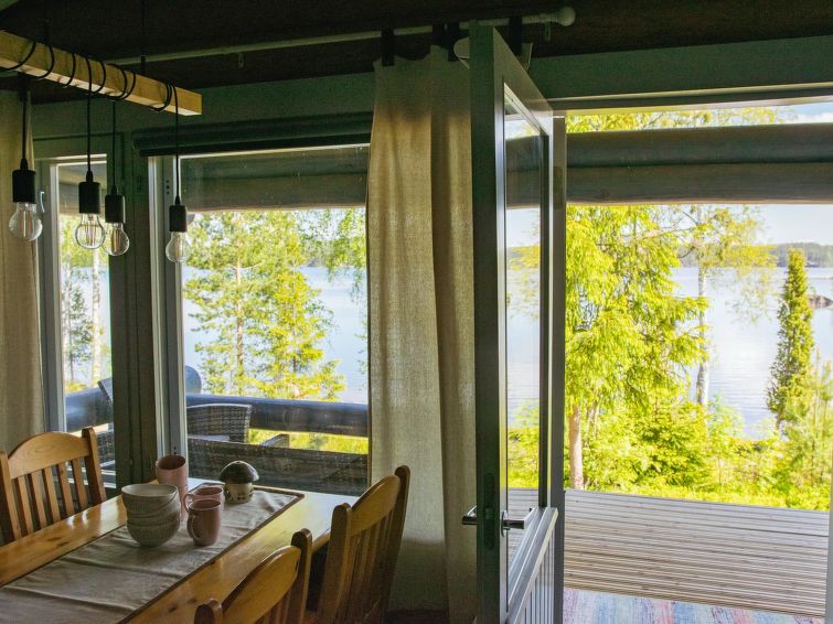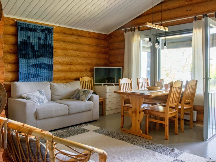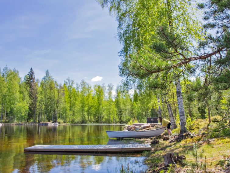 Obligatory cleaning deposit 150 € payable on arrival. Homely, comfortable log cottage on forest-covered slope. Swimming shore has current (running water): this water (Kietävälänvirta) does not freeze over in winter. Ferry by water 0.3 km (sounds of the ferry can be heard).