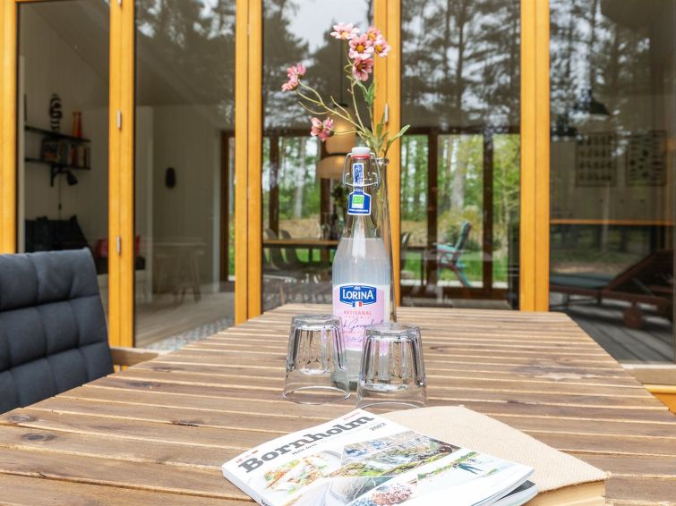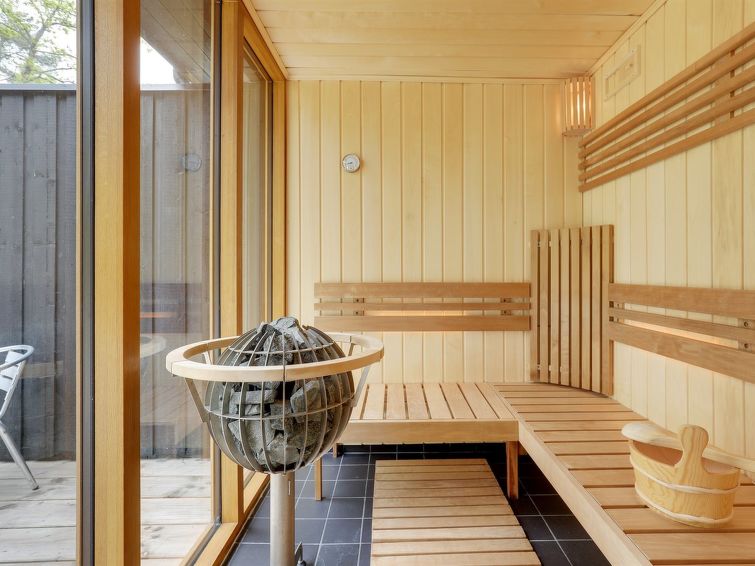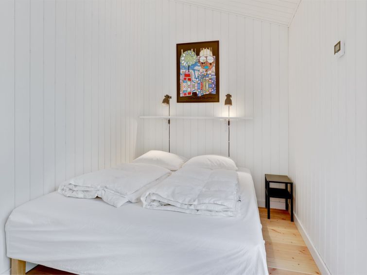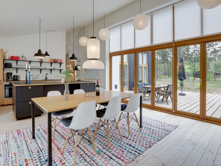 Enmannsbolig, bygget i 2021. 800 m fra sjøen. Privat: uberørt tomt 1'580 m2. Terrasse (130 m2), grill. I huset: badstu, vaskemaskin. Parkering ved hbrukt. Daglivarehandel 3 km. Golfbane 5 km. Eieren godtar ikke noen ungdomsgrupper.