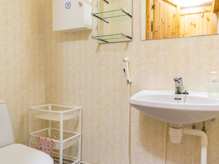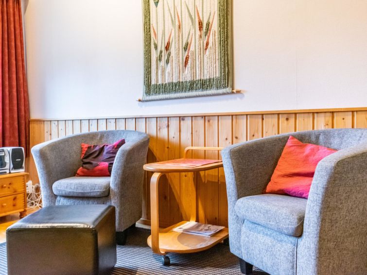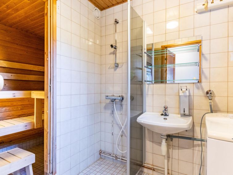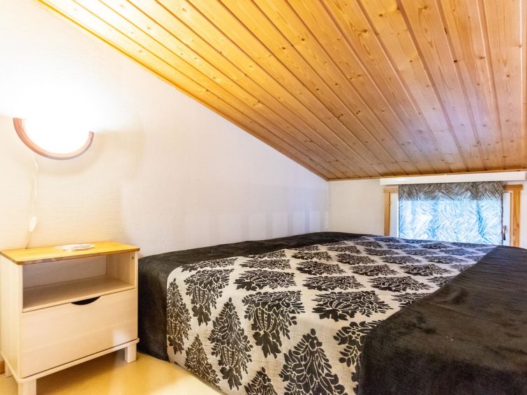 51 km north from Kemijärvi, row house with living room/kitchen downstairs, toilet, washroom, sauna (electric stove) and on the open balcony there are 5 single beds, open terrace outside.