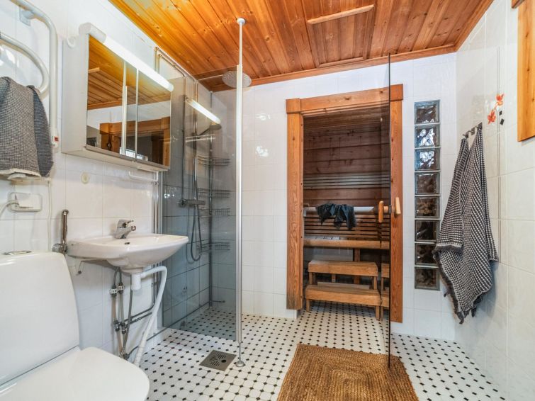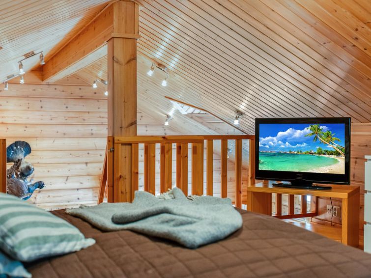 Log cottage built in 2005. Downstairs: Combined kitchen and living room, electric sauna, bedroom1: double bed, bedroom2: double bed, livingroom with sofa bed for 2. Loft: double bed.