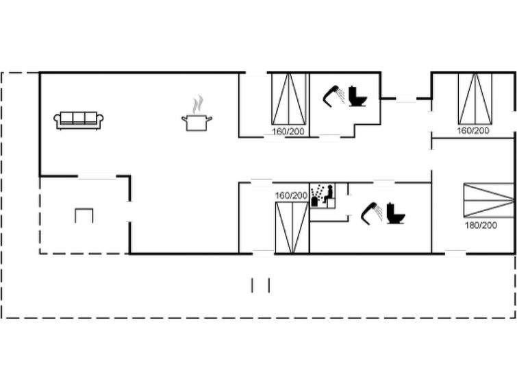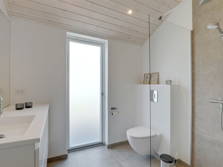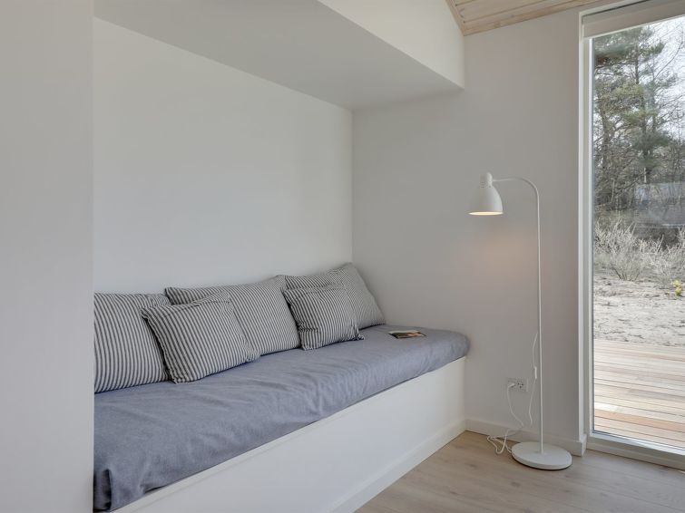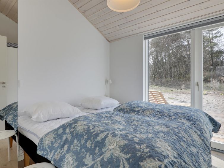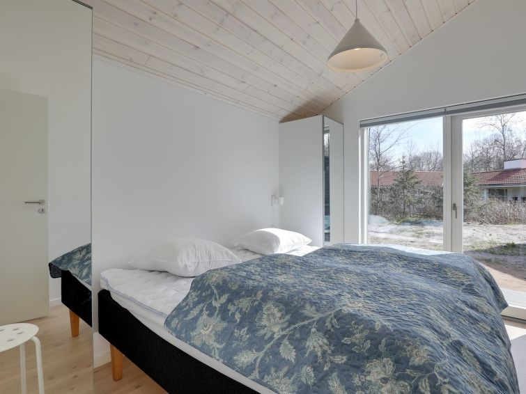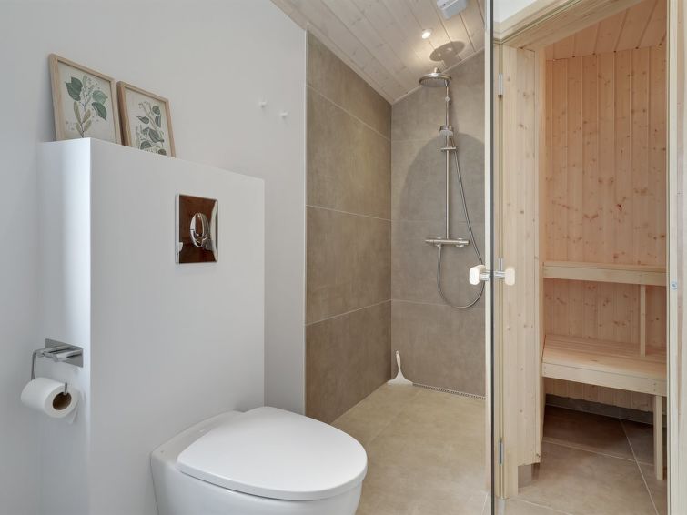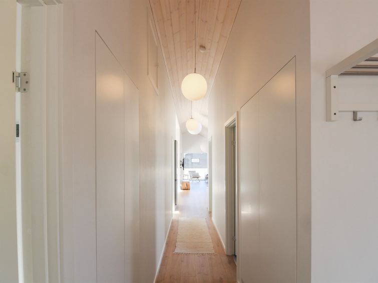 Enmannsbolig, bygget i 2022. 350 m fra sjøen. Privat: uberørt tomt 1'207 m2. Utendørs dusj, terrasse (70 m2), grill. I huset: badstu, vaskemaskin, tørketrommel. Parkering ved hbrukt. El-ladestasjon. Daglivarehandel 3 km. Golfbane 5 km. Eieren godtar ikke noen ungdomsgrupper.